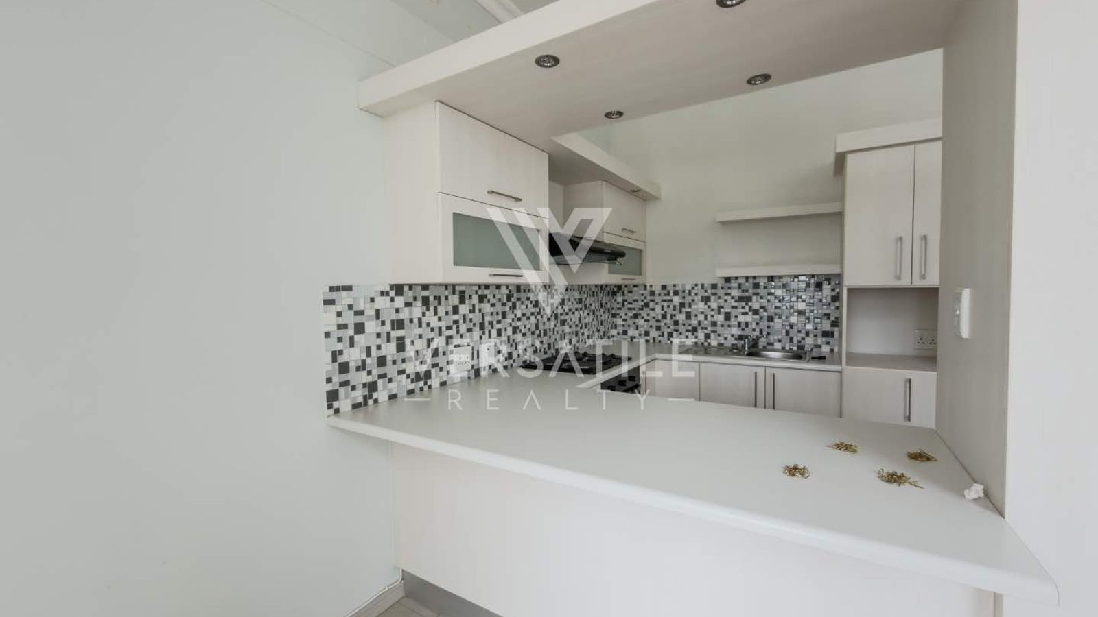 The unit features a spacious en- suite bedroom, and a fully equipped kitchen with ample cupboard space and living room.