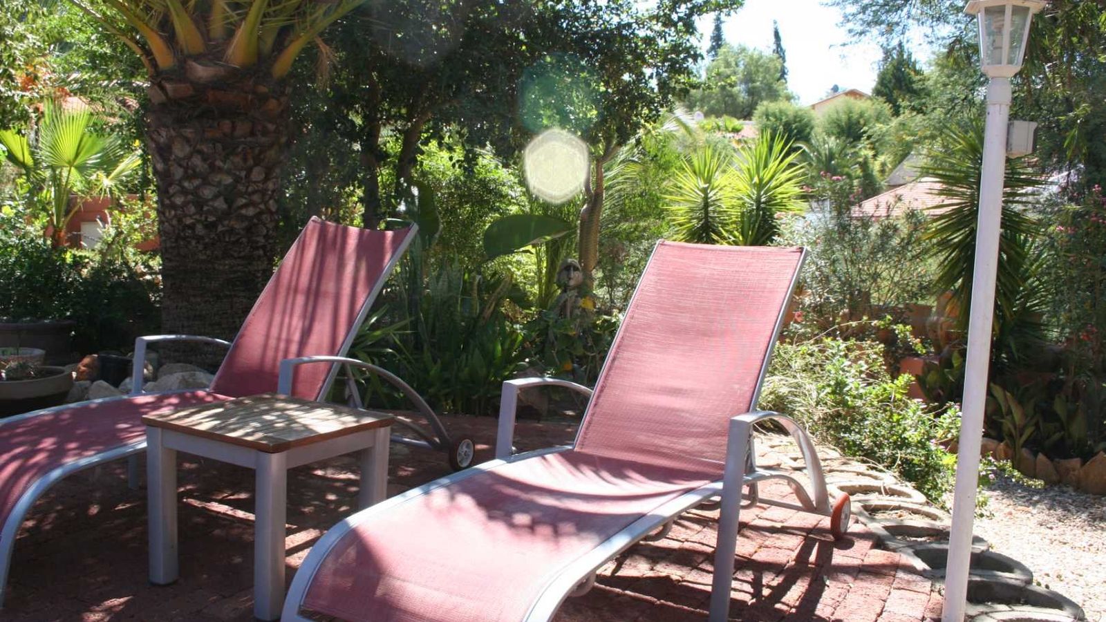 Boundary walls, paving, air-conditioners, swimming pool, landscaped garden