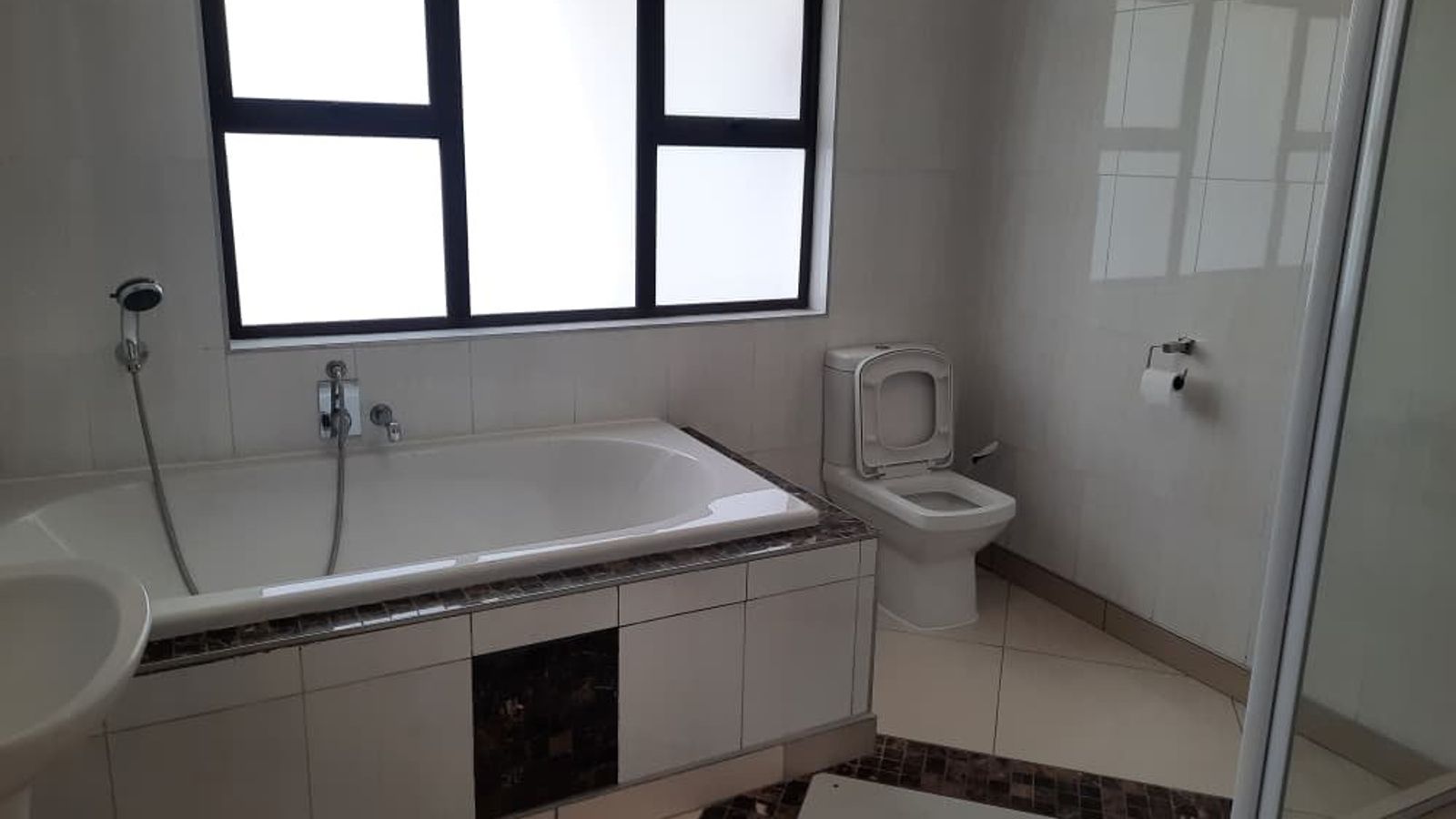 Large full bathroom (bath, shower, and toilet)