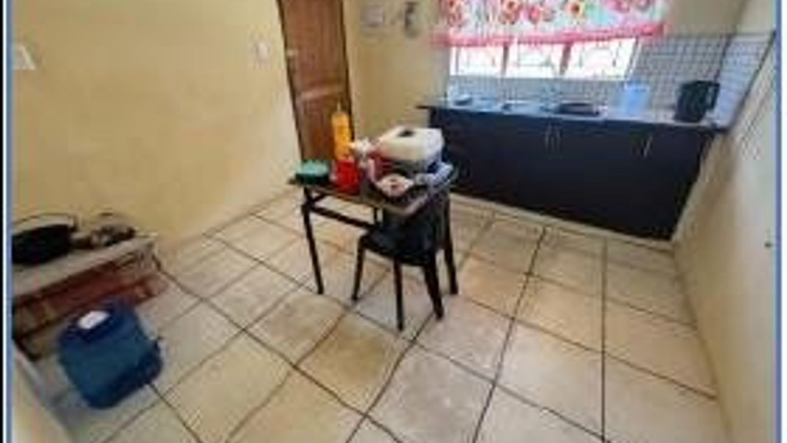 Inside, the home is adorned with ceramic tiles and features rhino board ceilings for a clean and modern look. The kitchen is equipped with a practical zinc unit, while the bedrooms include built-in cupboards for convenient storage. Although the finishes are standard, they are well-maintained and ready for personalization.