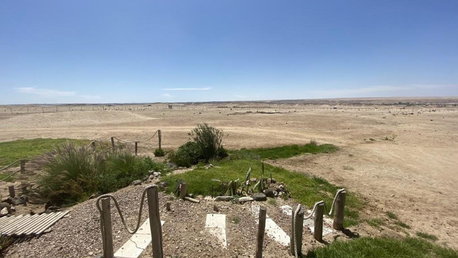 It offers beautiful views of the surrounding area and the Swakop River in the distance.
