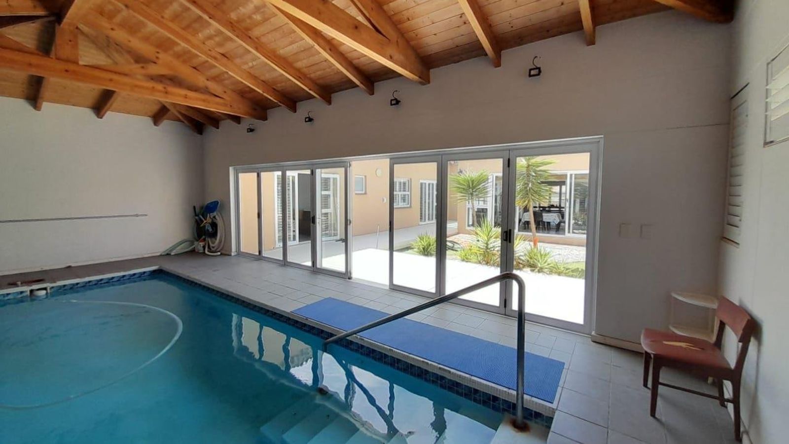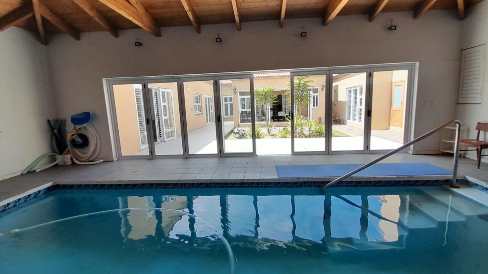 * Indoor Swimming Pool with Stack doors opening to the outside Deck and Courtyard
