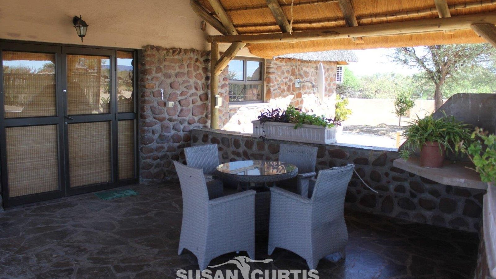 Discover one of Namibia's best-kept secrets at this exceptional Guest Farm. Situated on a 131.56-hectare property, it is enclosed by a 2.7-meter high game- and jackal-proof fence, bordering the picturesque Omaruru River. Immerse yourself in the beauty of the surrounding trees and plants, and be captivated by the abundant wildlife. Conveniently located between Windhoek and Etosha, as well as Swakopmund on the coast, this Guest Farm is the ideal halfway stop for travelers. Just a short distance from Omaruru in Namibia, this tranquil retreat offers comfortable accommodation in a serene setting, enhanced by the gentle flow of the river.