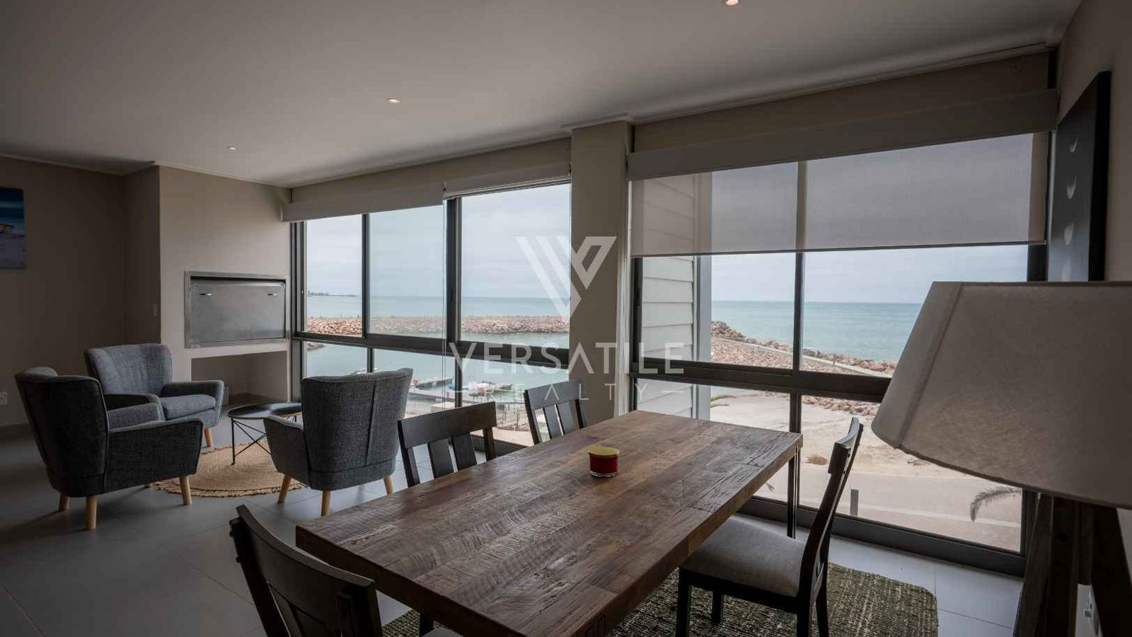 Experience the epitome of coastal luxury in this stunning two-story apartment, perfectly situated on the 2nd floor. You will live directly at the water's edge, waking up to breathtaking, unparalleled sea views every single day. This location is not just a home; it is a lifestyle, placing you in the heart of Swakopmund's most sought-after destination with immediate access to the vibrant waterfront atmosphere.