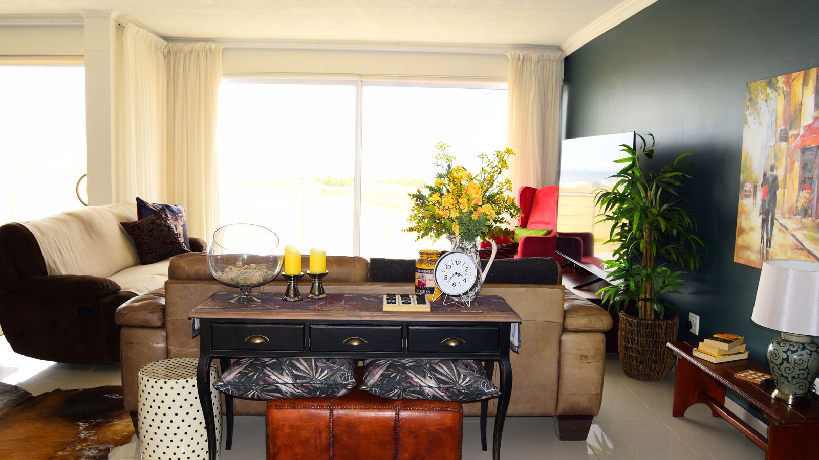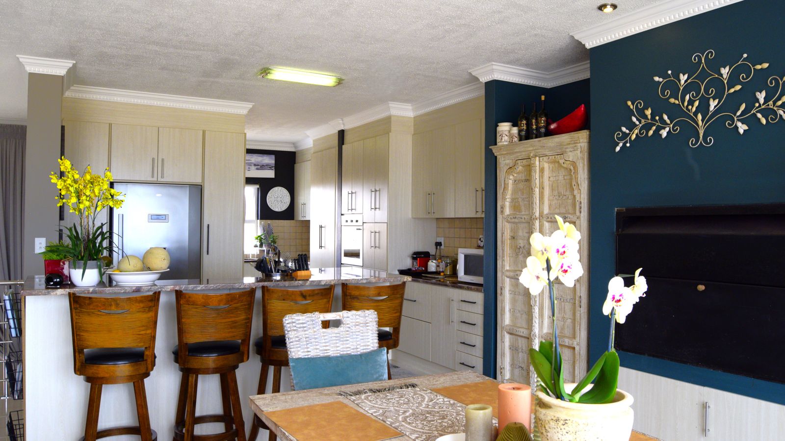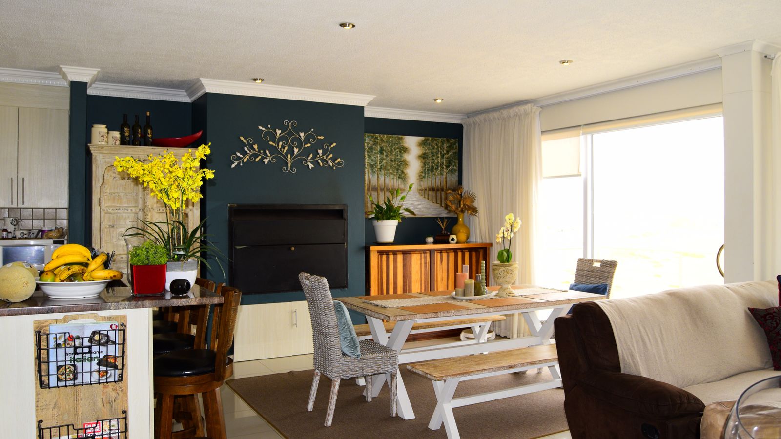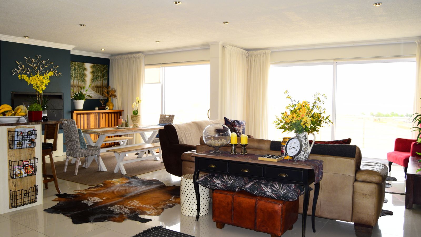 Designed for effortless entertaining, the dining area features an indoor built-in braai, flowing into a welcoming lounge..