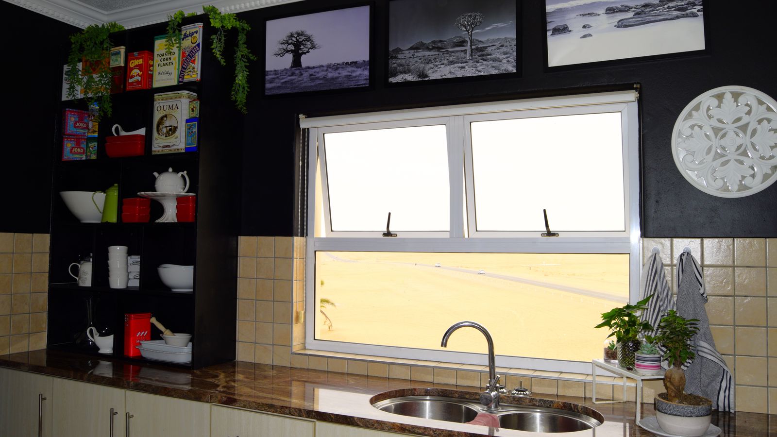 Ascending to the upper floor, panoramic views of the iconic Namib Desert set a breathtaking backdrop to the open-plan living space.