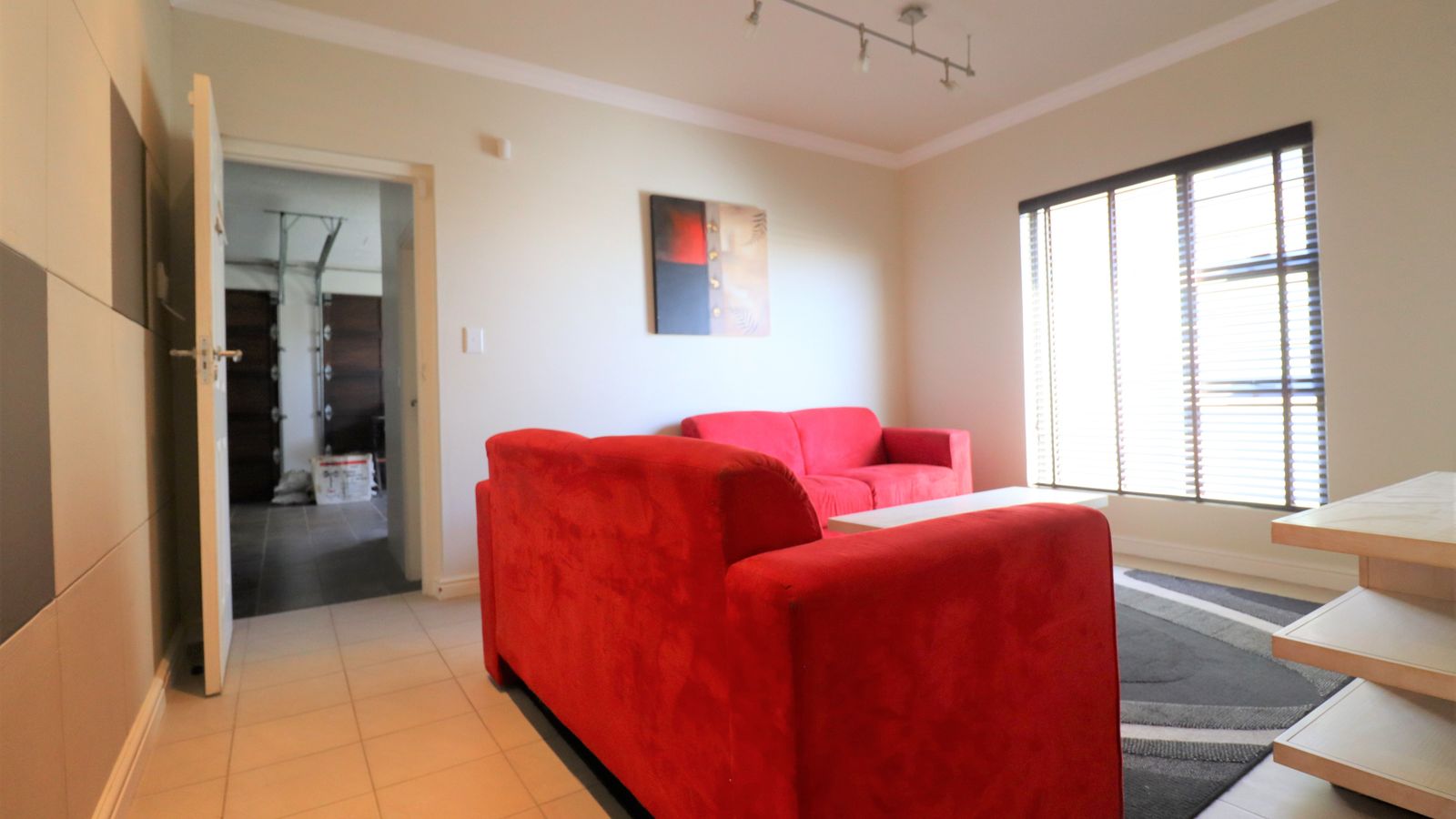 Step inside, and you'll find yourself in a warm and inviting lounge area, perfect for an office space or gym area.