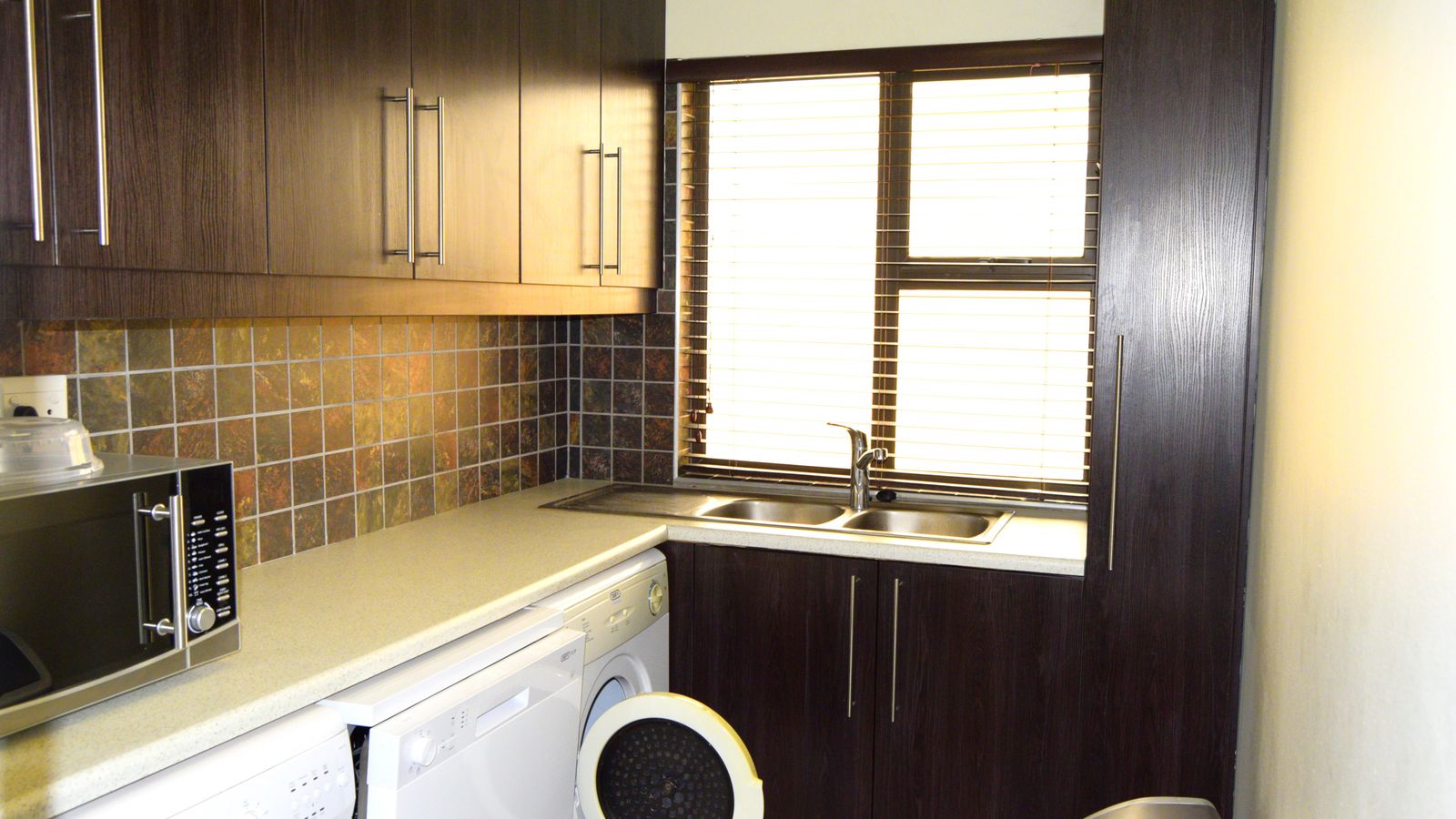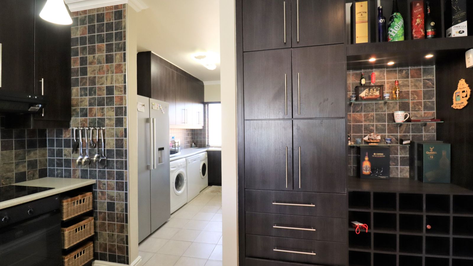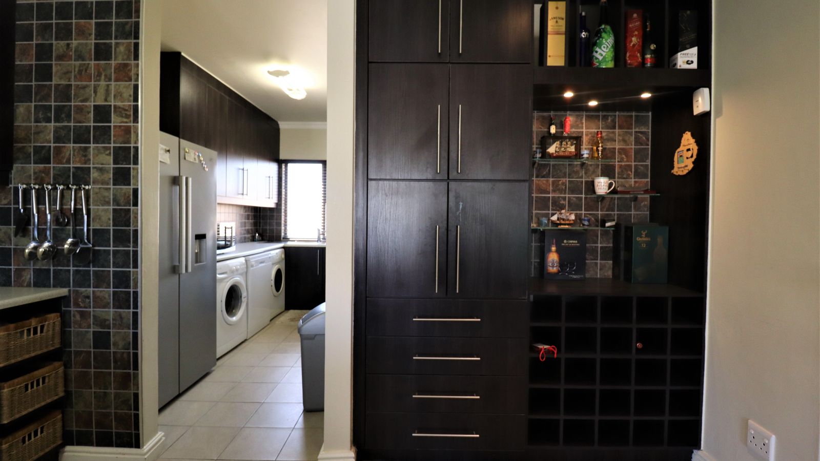 A well-appointed scullery, equipped with essential appliances such as a dishwasher, washing machine, and tumble dryer, ensuring effortless daily living.