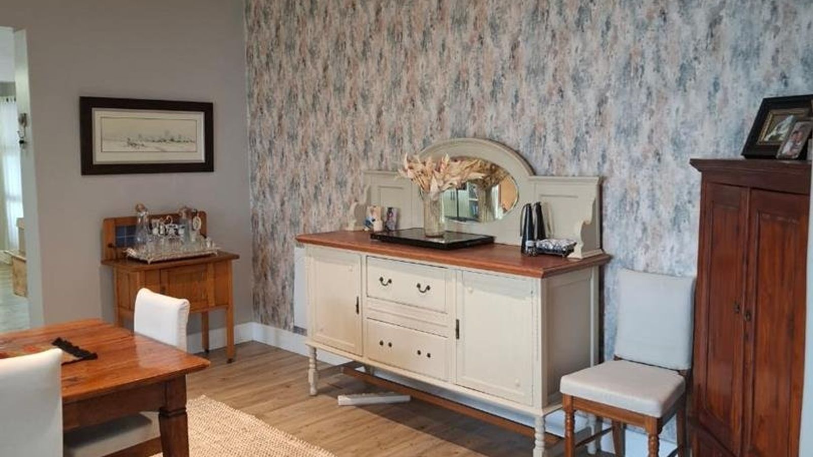 The main building is designed for modern family living. It features a spacious lounge, dining room, and family area flowing seamlessly into a well-appointed kitchen with scullery. There’s also a study for work or quiet reflection, while the double garage and single carport ensure ample parking and storage.