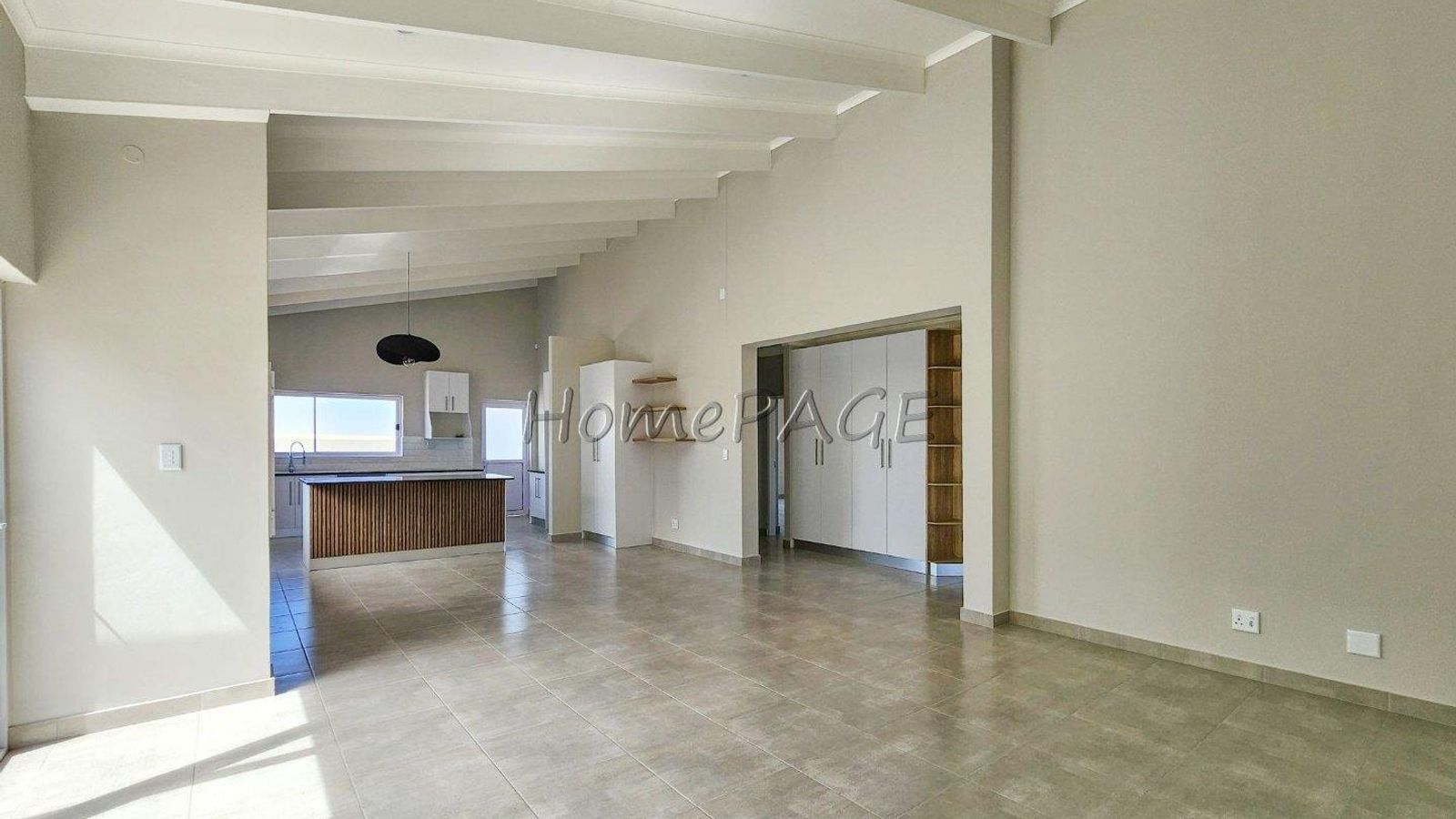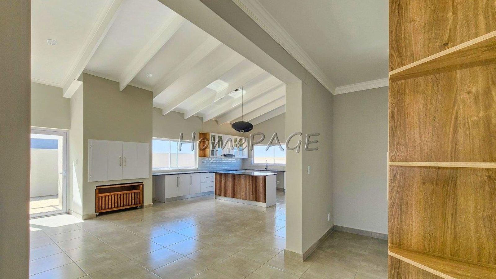 * Large living area, open plan with kitchen,