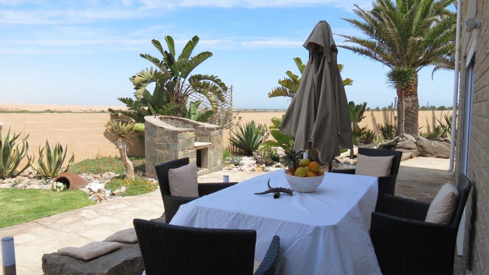 This double story property is situated in beautiful location with unobstructed views over the Namib Dunes in the South and to the Atlantic in the West, at the same time considering the importance of the Northern winter sun in its design.