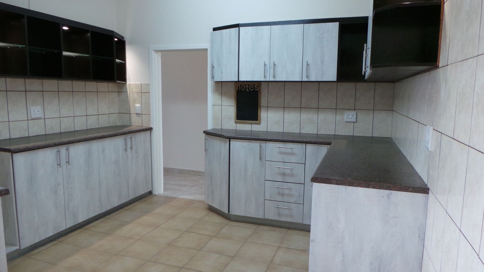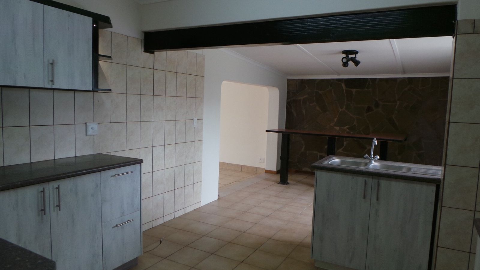 This neat well maintained family home offers 3 bedrooms, 2 full bathrooms, ( master bedroom with own private bathroom) study, lounge, dining, entertainment area with bar and ind. BBQ, laundry, outside toilet plus garage that fits 4 cars. One garage could easily be converted to a flat. Front and back garden, paved drive way. Plot measures 714m² all enclosed with high boundary walls.