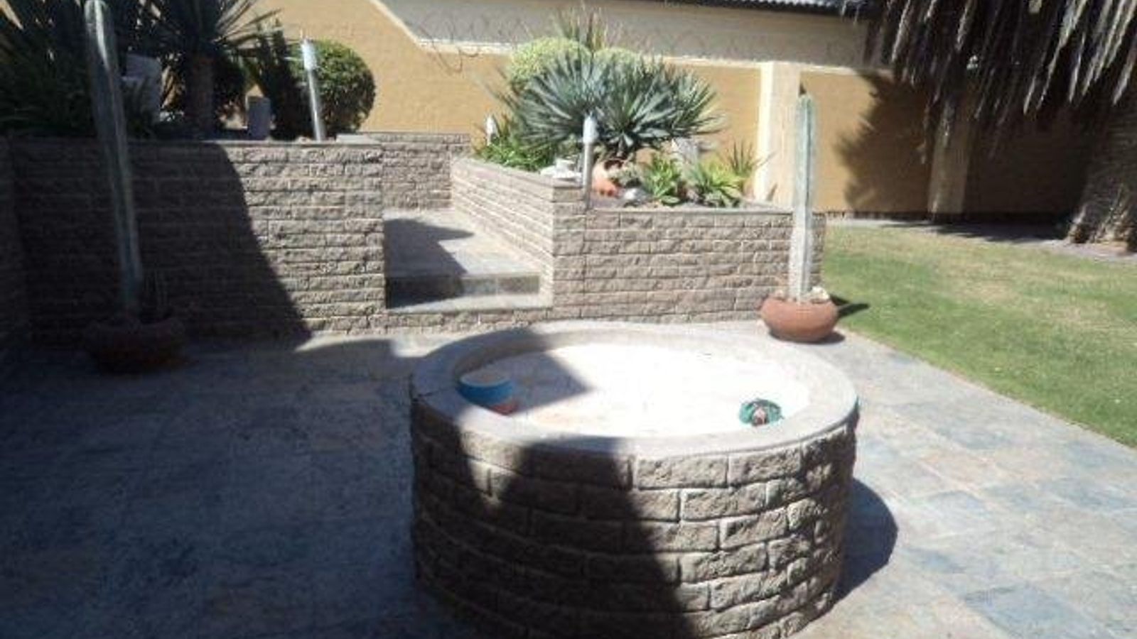 Well maintained back yard with a outside BBQ area.