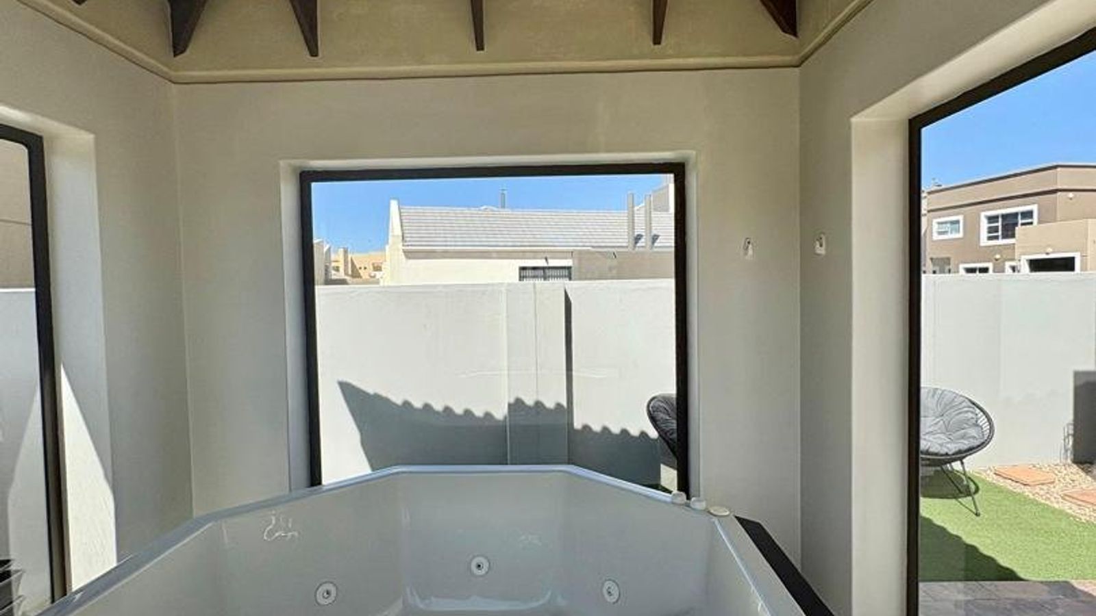 Step outside to a paved garden area designed for low maintenance, featuring a shaded built-in jacuzzi room—perfect for weekend family fun or relaxing after a long day.