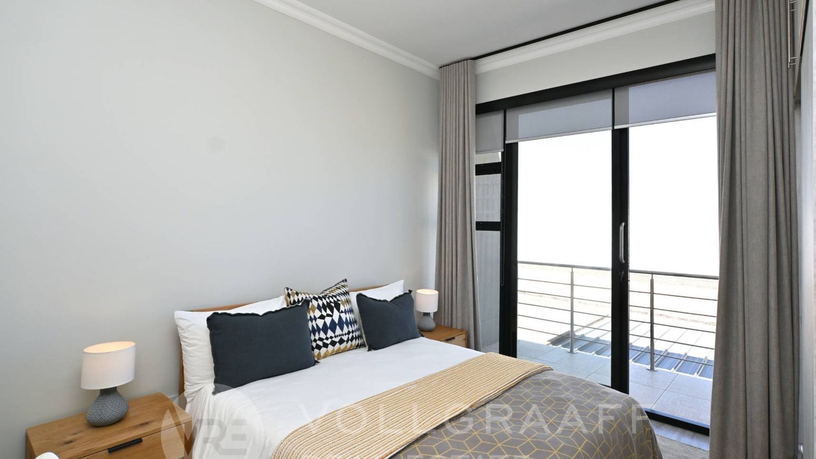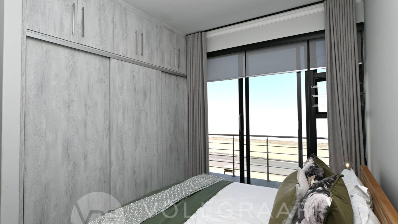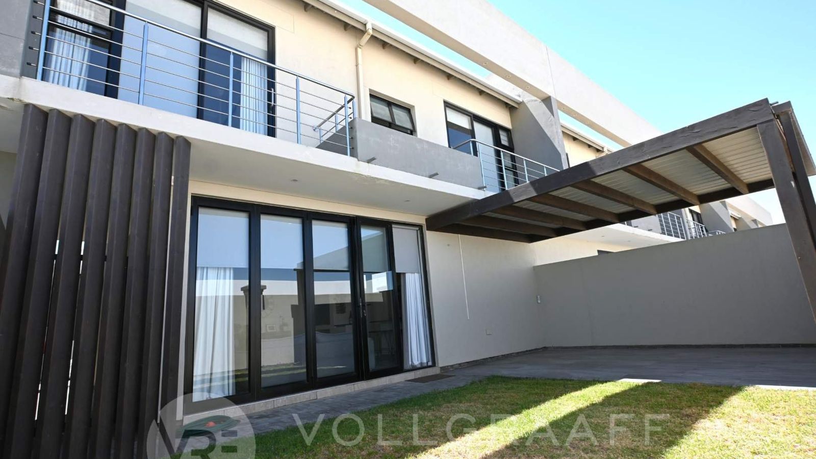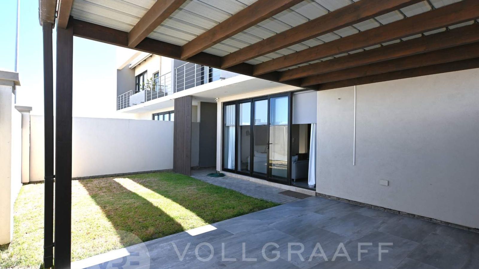 The home welcomes you into open living space where the kitchen, and lounge areas connect naturally. The kitchen is fitted with granite countertops and flows effortlessly into the main living area, creating a comfortable space for everyday living and easy entertaining. A built-in braai forms part of the living area, while stack-away sliding doors open onto a private courtyard with a pergola and a neat lawn area — perfect for enjoying Swakopmund’s fresh coastal air.
