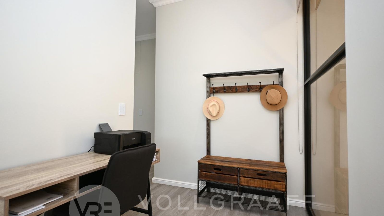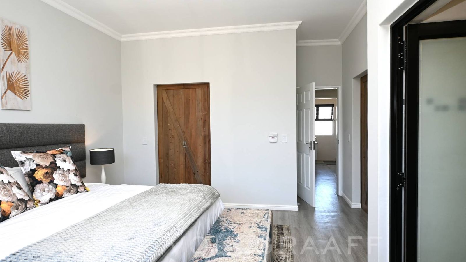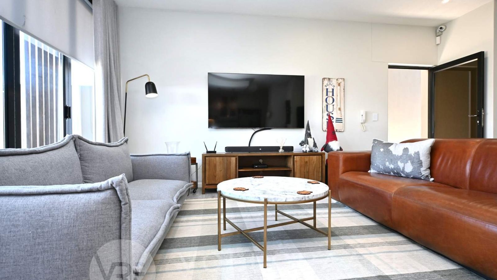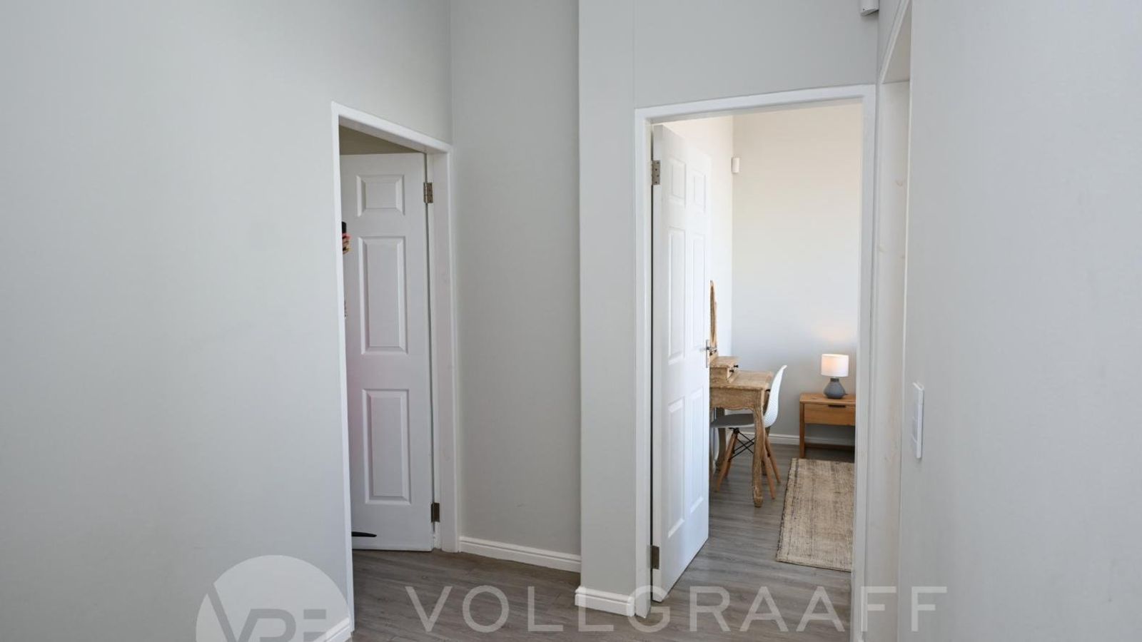 The home welcomes you into open living space where the kitchen, and lounge areas connect naturally. The kitchen is fitted with granite countertops and flows effortlessly into the main living area, creating a comfortable space for everyday living and easy entertaining. A built-in braai forms part of the living area, while stack-away sliding doors open onto a private courtyard with a pergola and a neat lawn area — perfect for enjoying Swakopmund’s fresh coastal air.