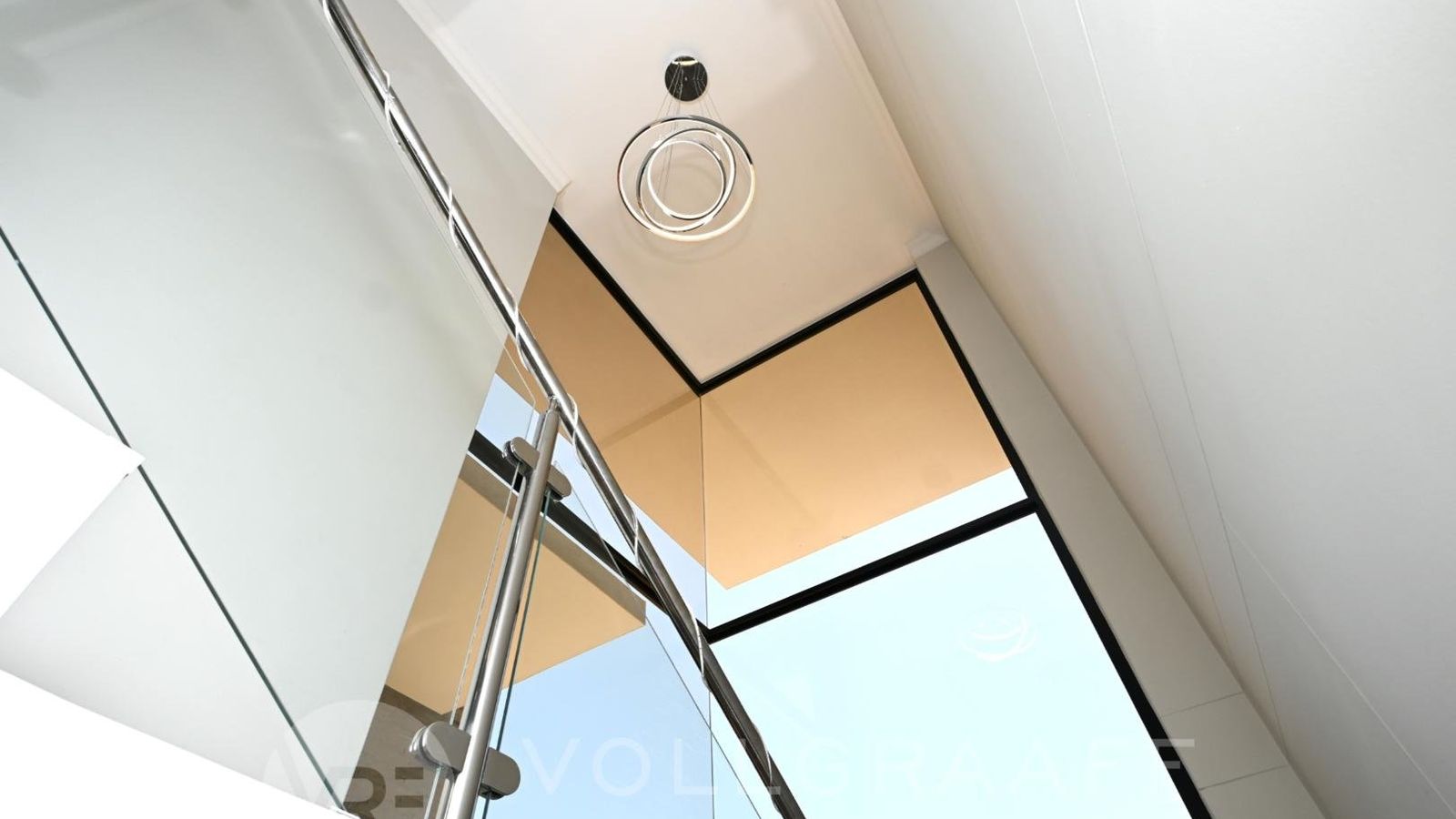 A striking feature window along the staircase fills the home with natural light and creates a bright transition to the upper level.