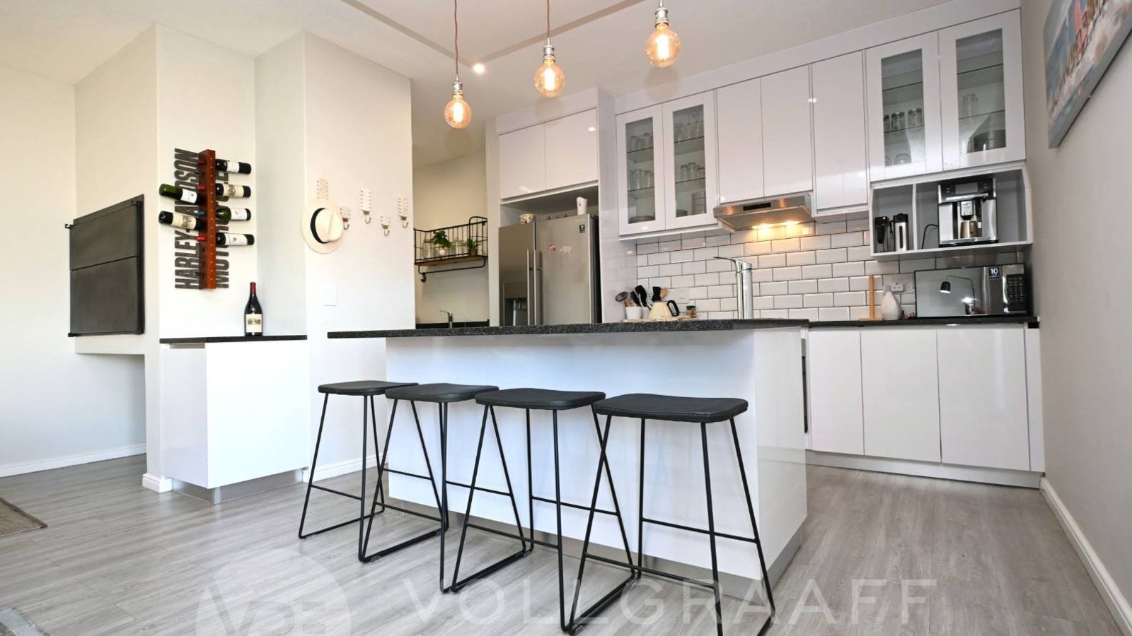 Upstairs, all three bedrooms open onto their own private balconies. Two bedrooms share a full bathroom, while the main bedroom offers a comfortable retreat with its own balcony, en-suite bathroom, and two closets concealed behind stylish sliding barn doors.
