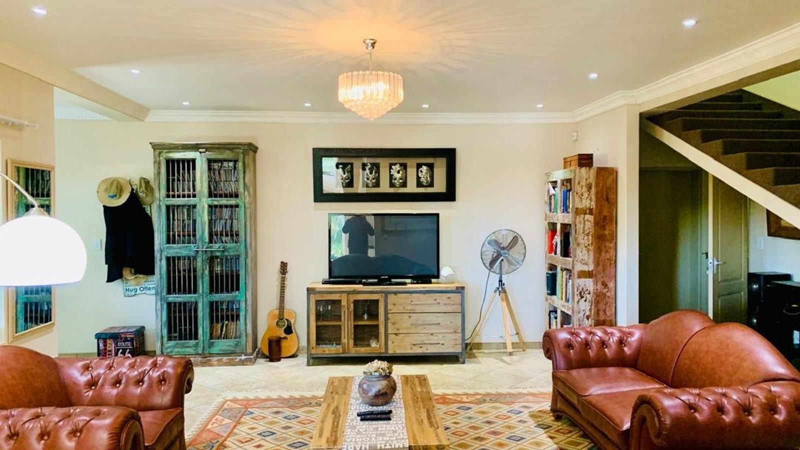 Entertainment Paradise: Bask in the sun-drenched patio, take a dip in the expansive swimming pool, or entertain guests in the indoor braai area that flows effortlessly into a cozy living space. The lush garden and palm trees provide a picture-perfect backdrop for gatherings.