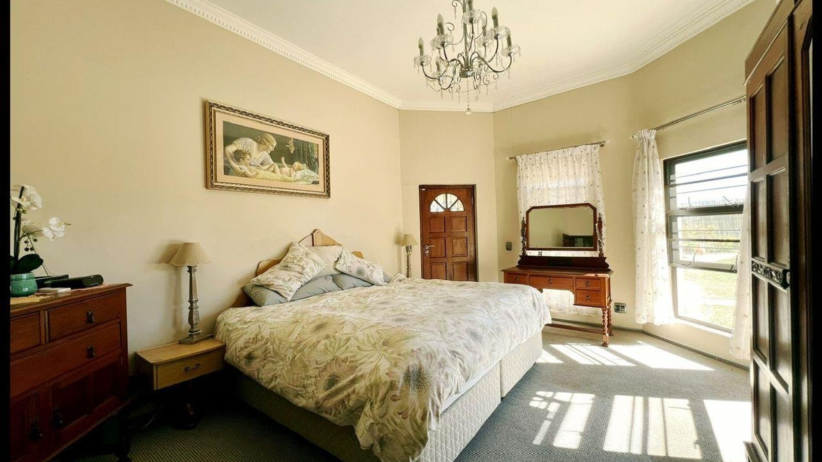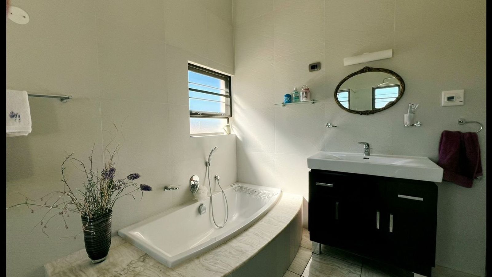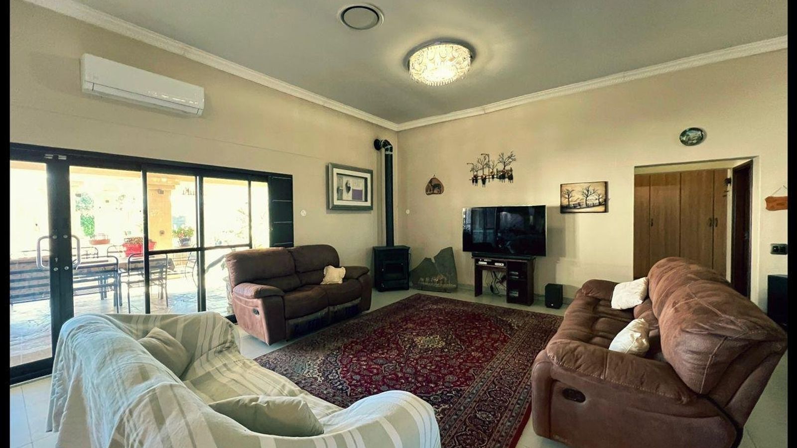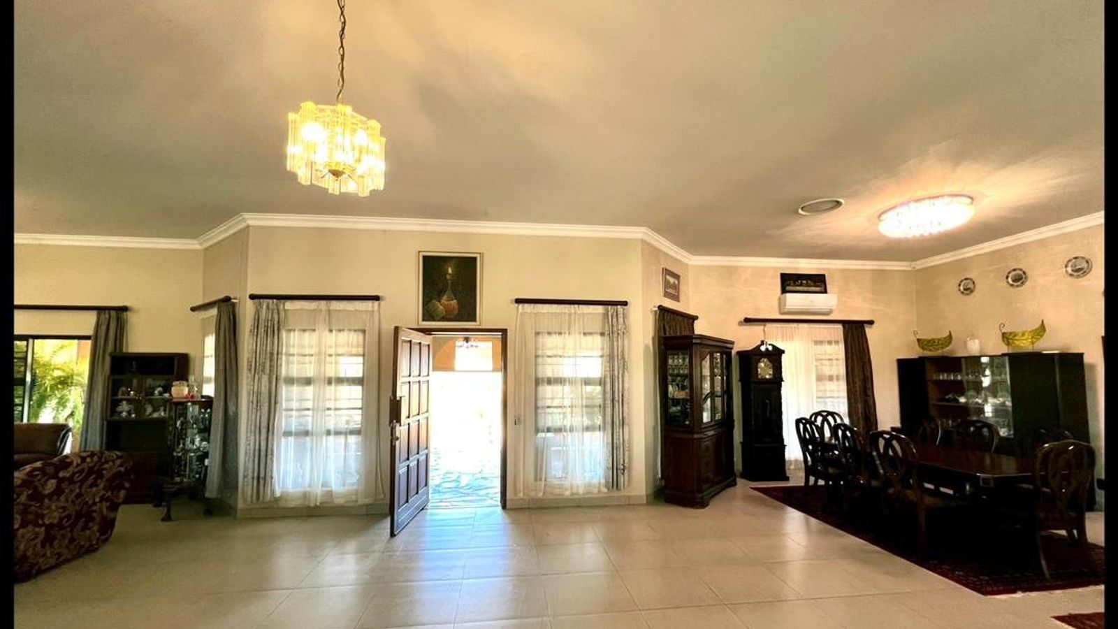 This modern 3-bedroom house has a huge open plan living area with a kitchen to die for with a dining room, lounge, tv room, all opening on to an outside entertainment area with braai etc., there is an office and hobby room as well as a granny flat with separate patio and entrance. The underfloor heating, water cooling system. state of the art solar energy installation with a backup generator, the grey water system for gardening, registered borehole as well as access to municipal water and numerous outbuildings makes this value for money and basically self-sustained living.
