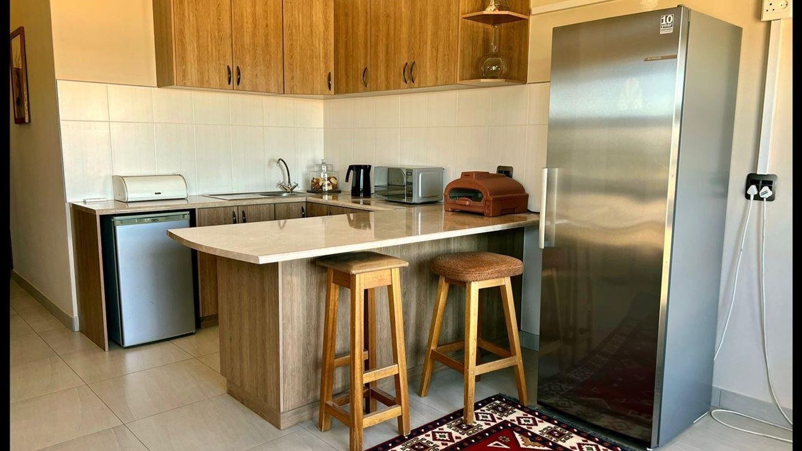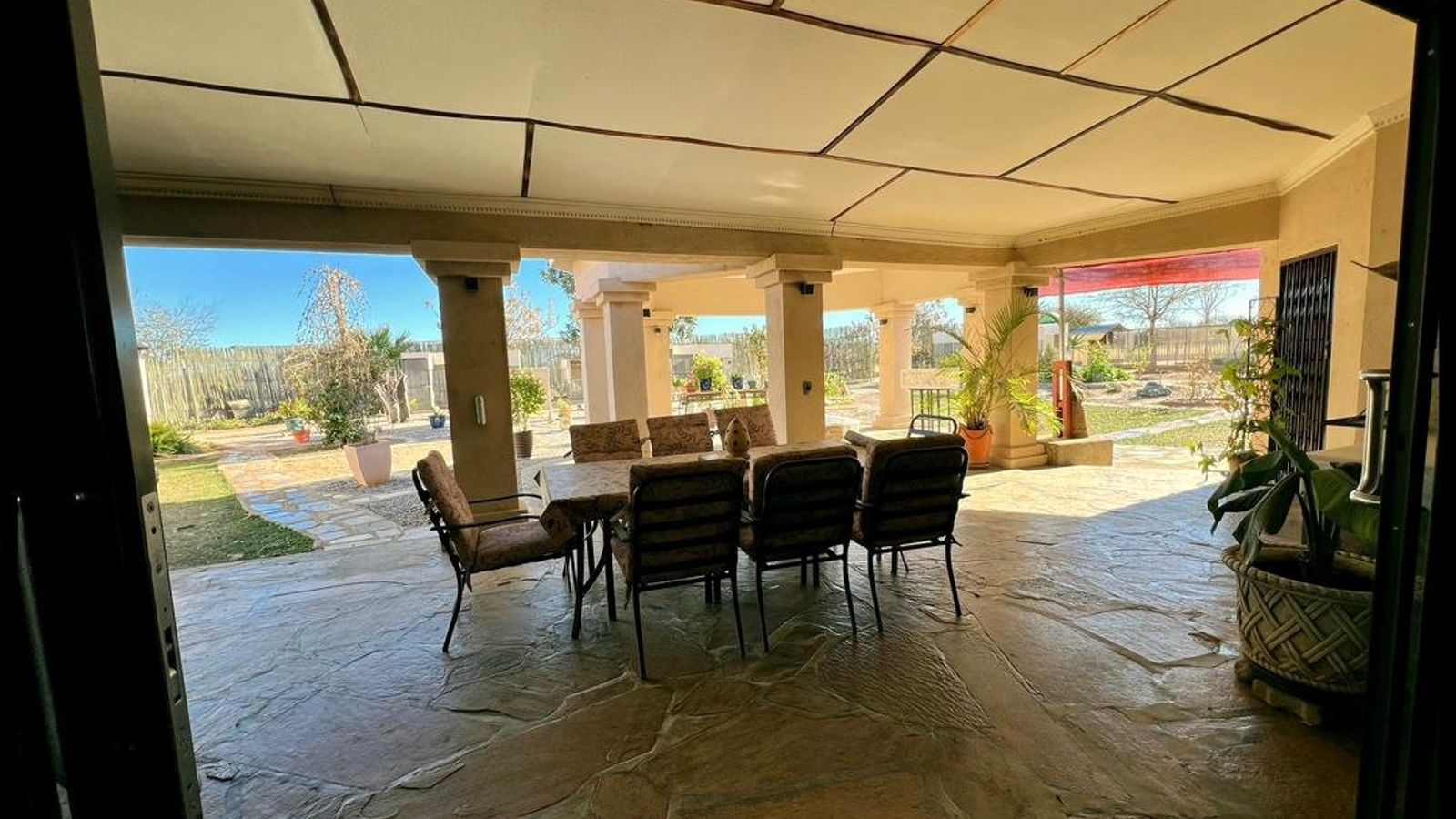 Lots and lots of fruit trees, a lovely garden and lawn and the spectacular view of the Omaruru Koppie and the Erongo Mountains from the comfort of the front verandah makes this a paradise.