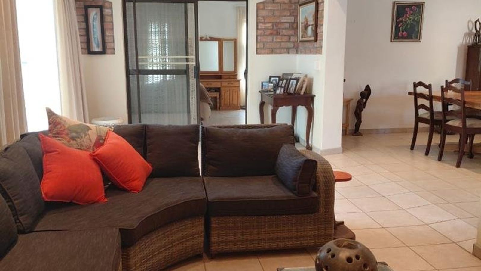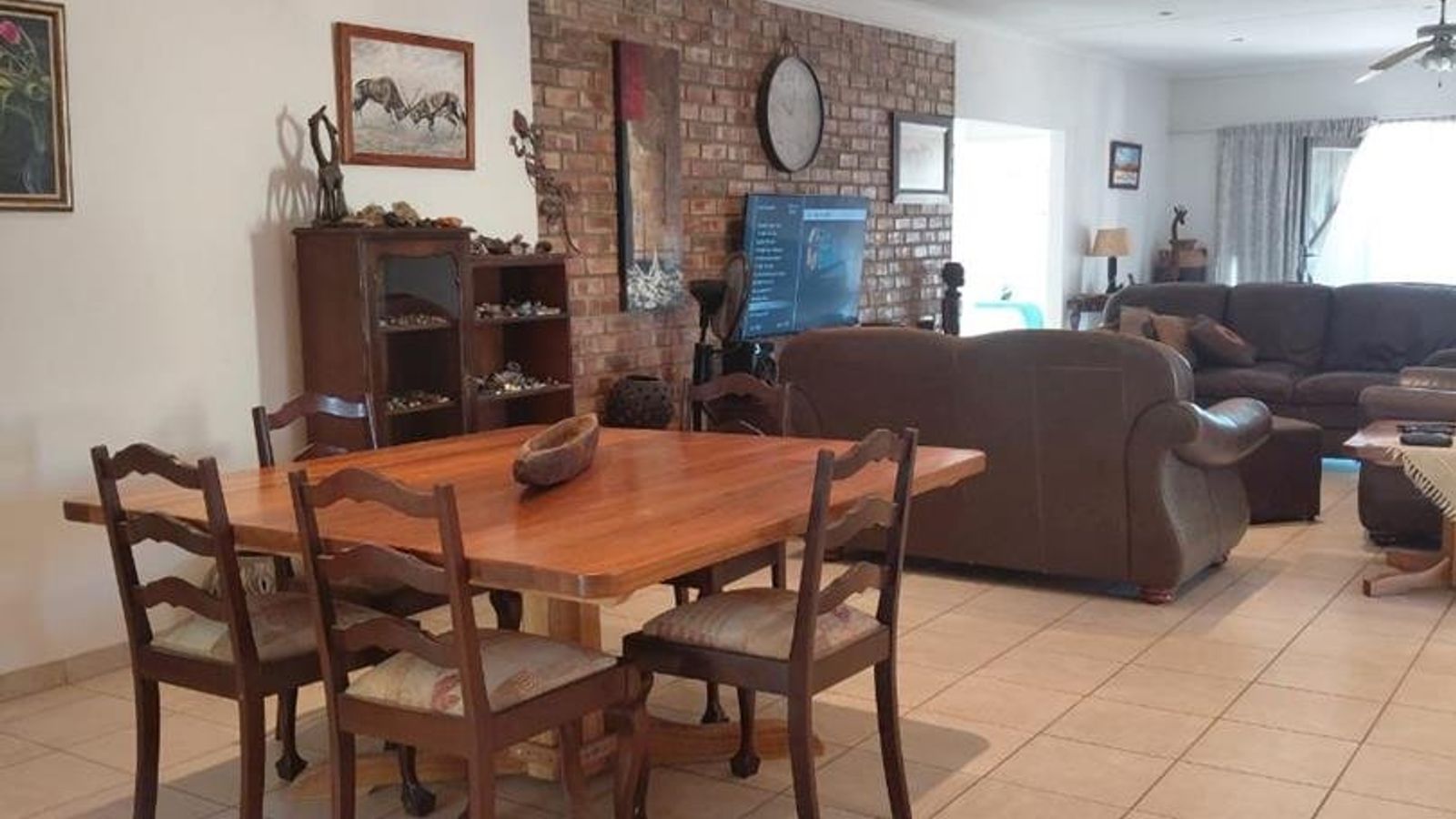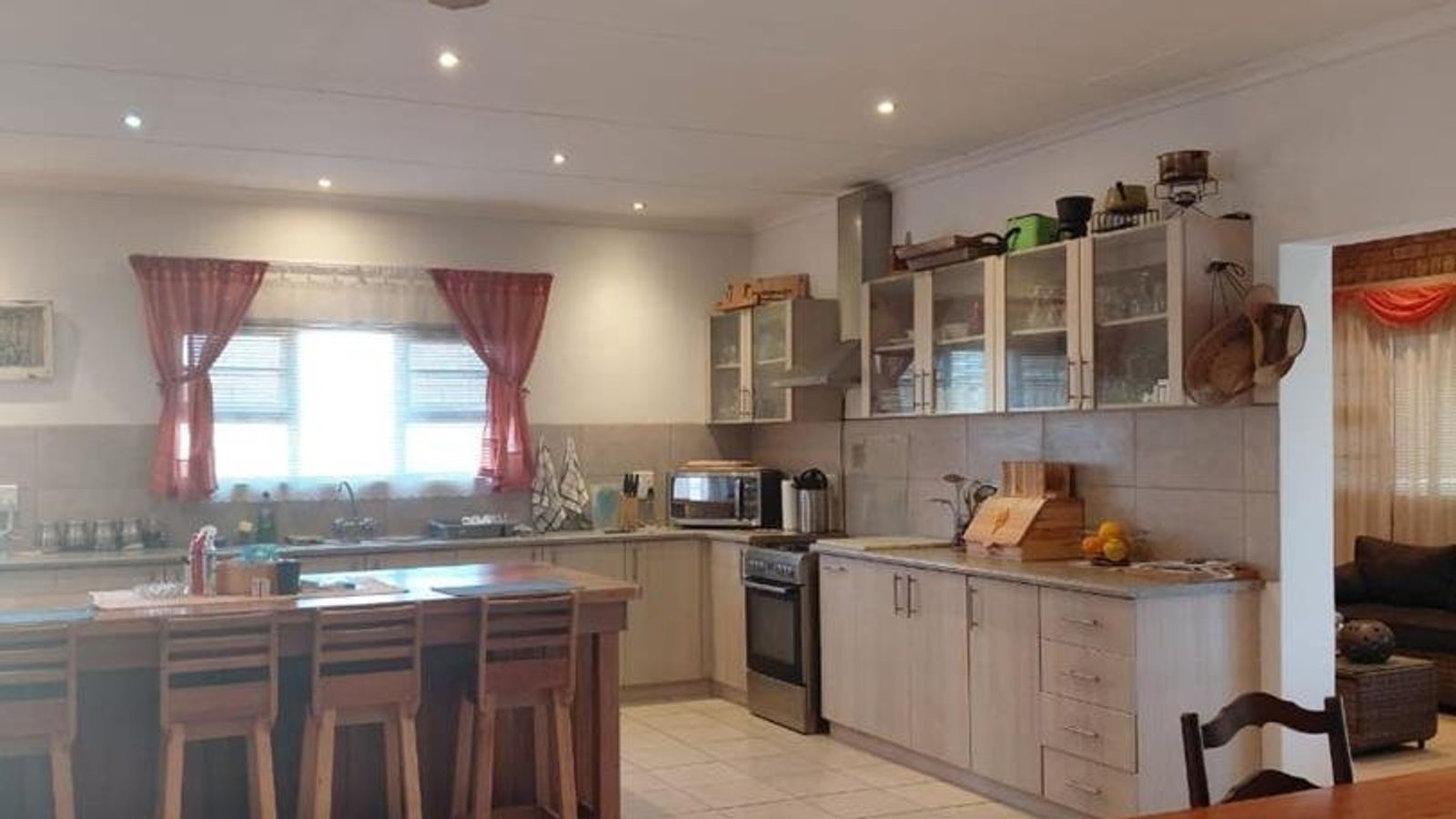 As you enter the house, you are welcomed by a huge open plan area that includes a lounge, kitchen, dining room and an adjacent indoor braai area. The space is perfect for entertaining guests or spending quality time with your loved ones.