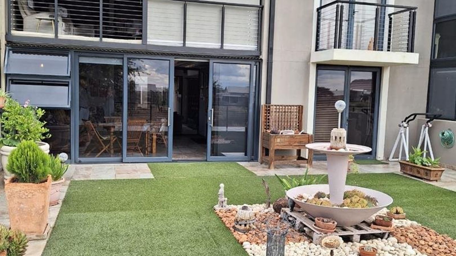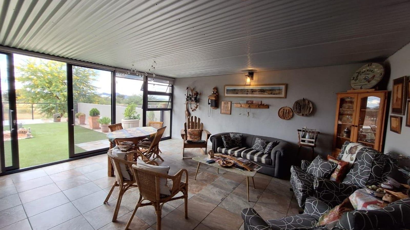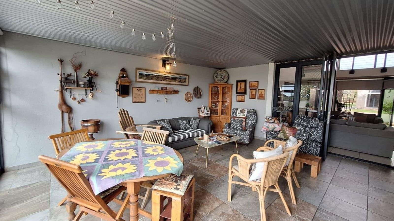• Entertainment area (covered) with built in braai and sliding doors leading to outside