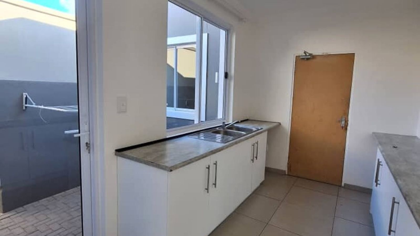 The home features a spacious open-plan kitchen, dining, and lounge area, as well as a separate scullery. Enjoy the outdoor living space with a large patio and built-in braai, perfect for entertaining. The property also includes a double garage for your convenience.