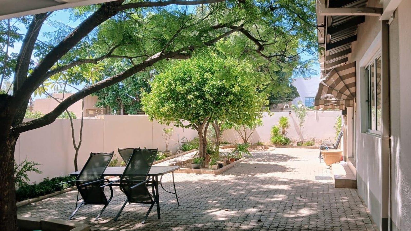 - Sliding doors to easy-maintainable garden with fruit trees