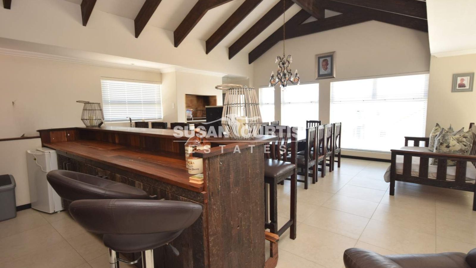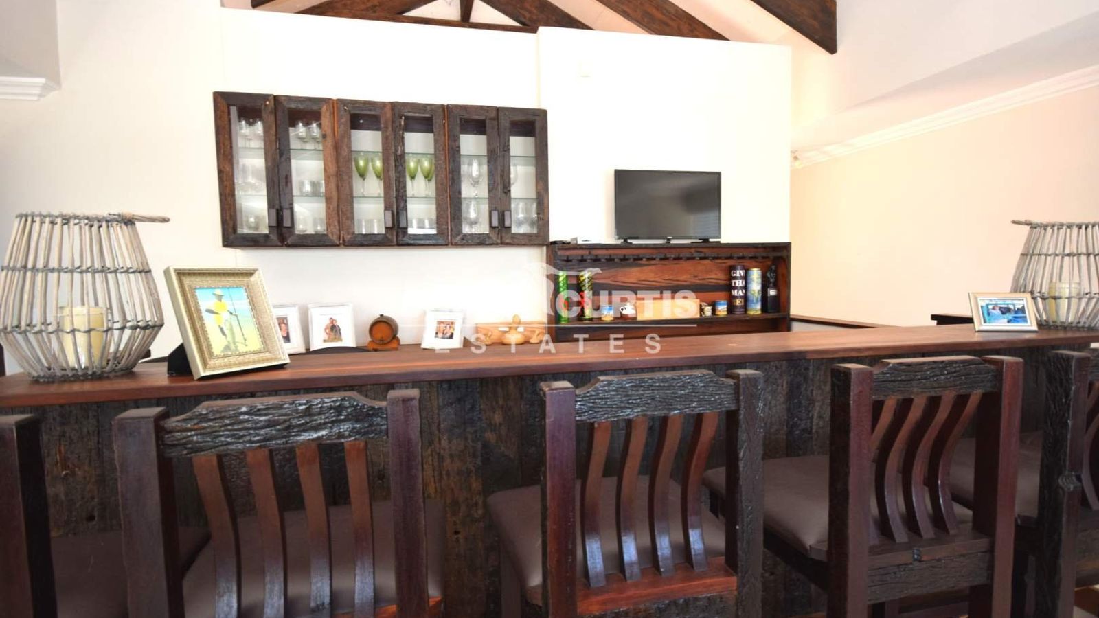 # Large entertainment area, with complete bar facilities, built with sleeper wood.