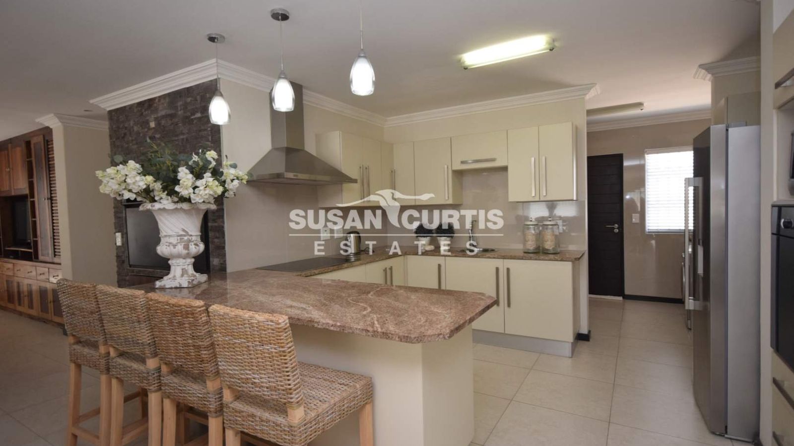 # Large open plan Living area, with formal Lounge, Dining area and well equipped kitchen, with breakfast nook, granite tops and veneer BIC's.