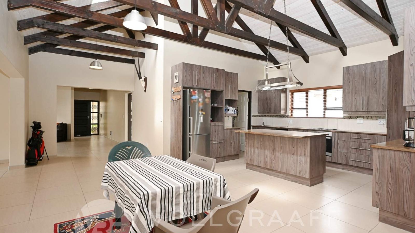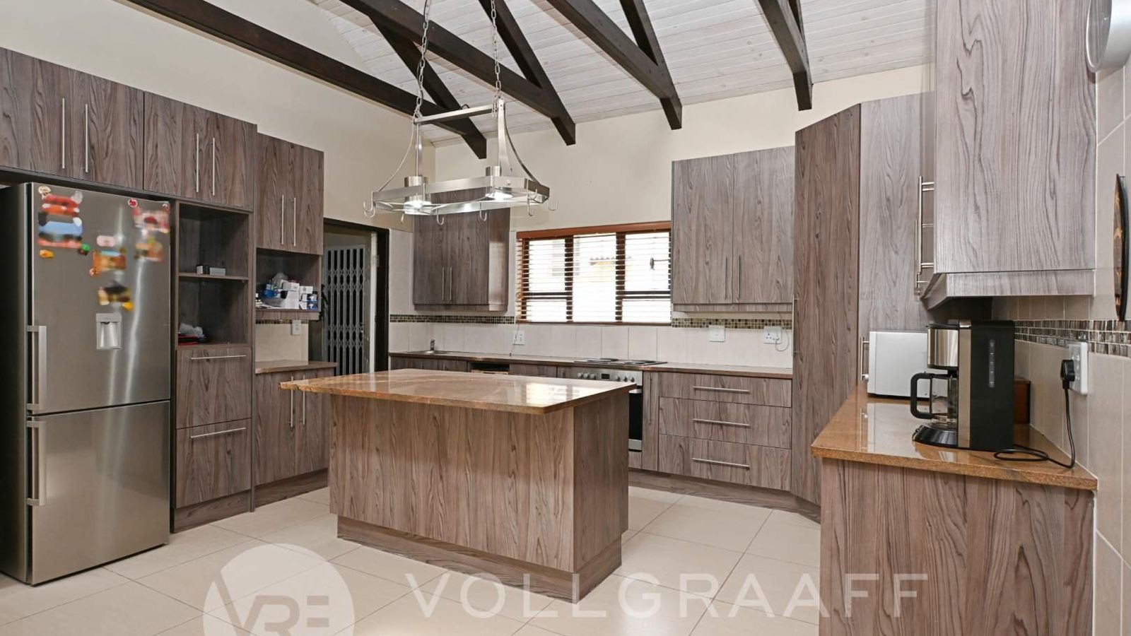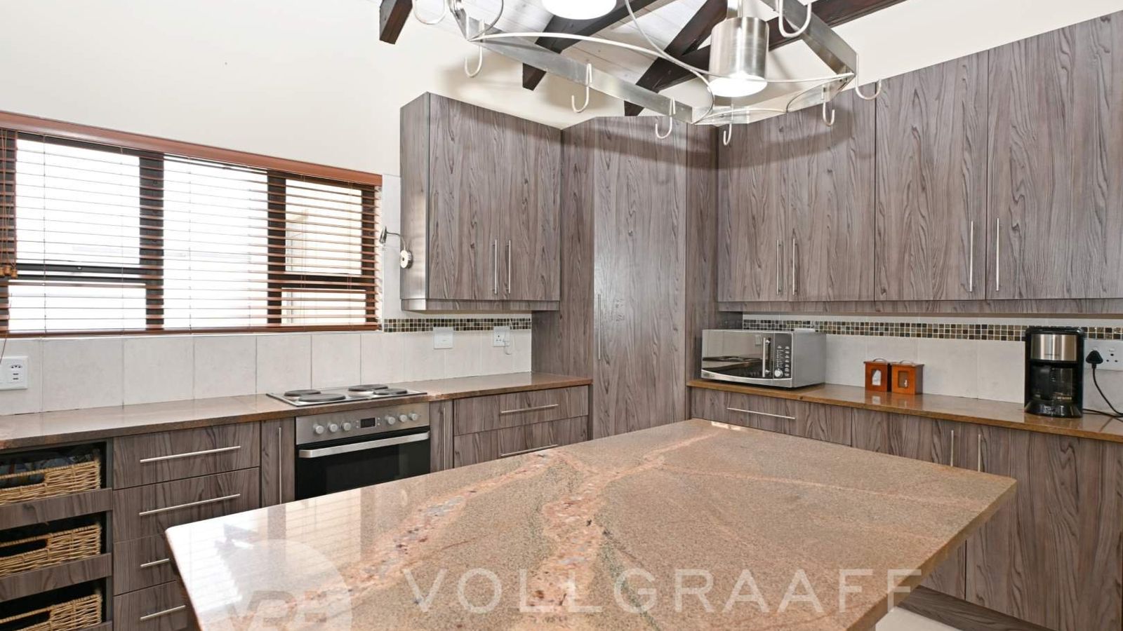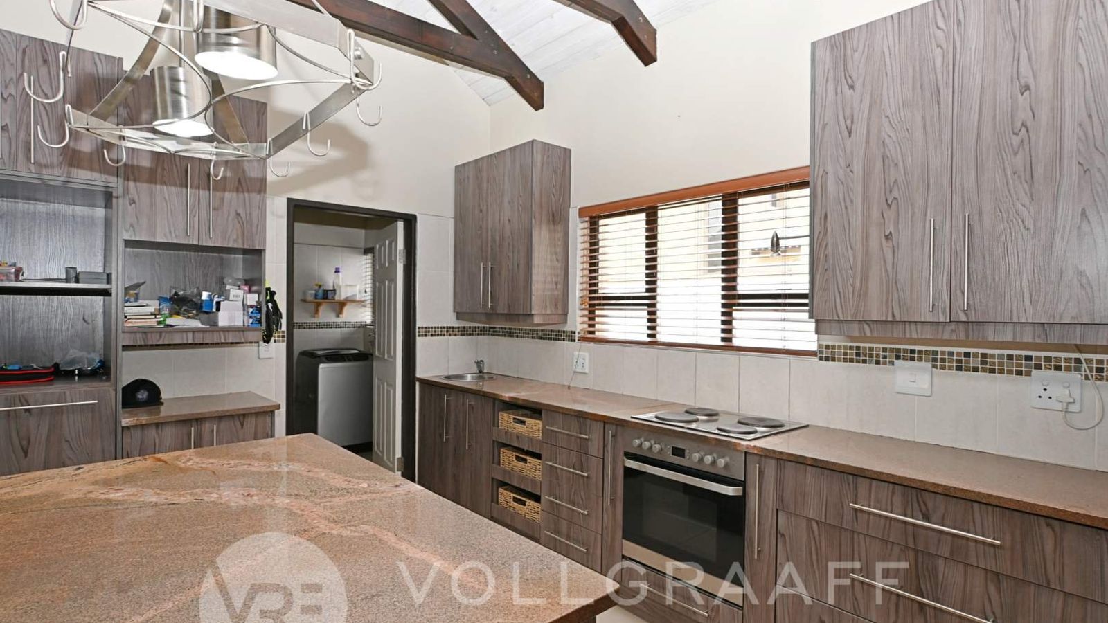 The kitchen is both functional and stylish, fitted with granite countertops and ample cabinetry. A separate scullery keeps the main area neat and practical, with direct access to the outside.