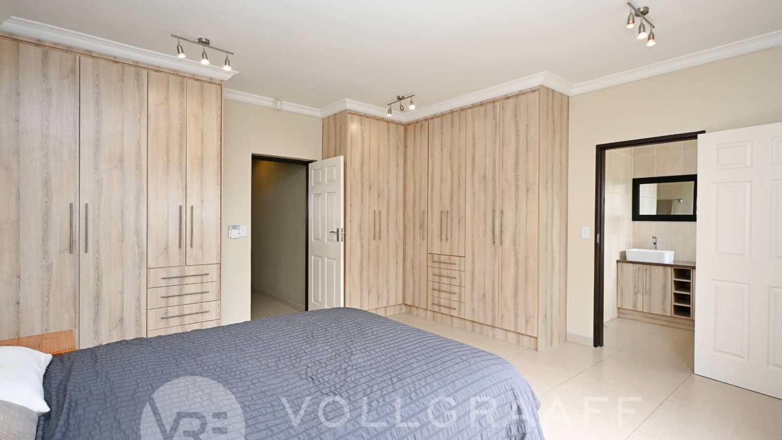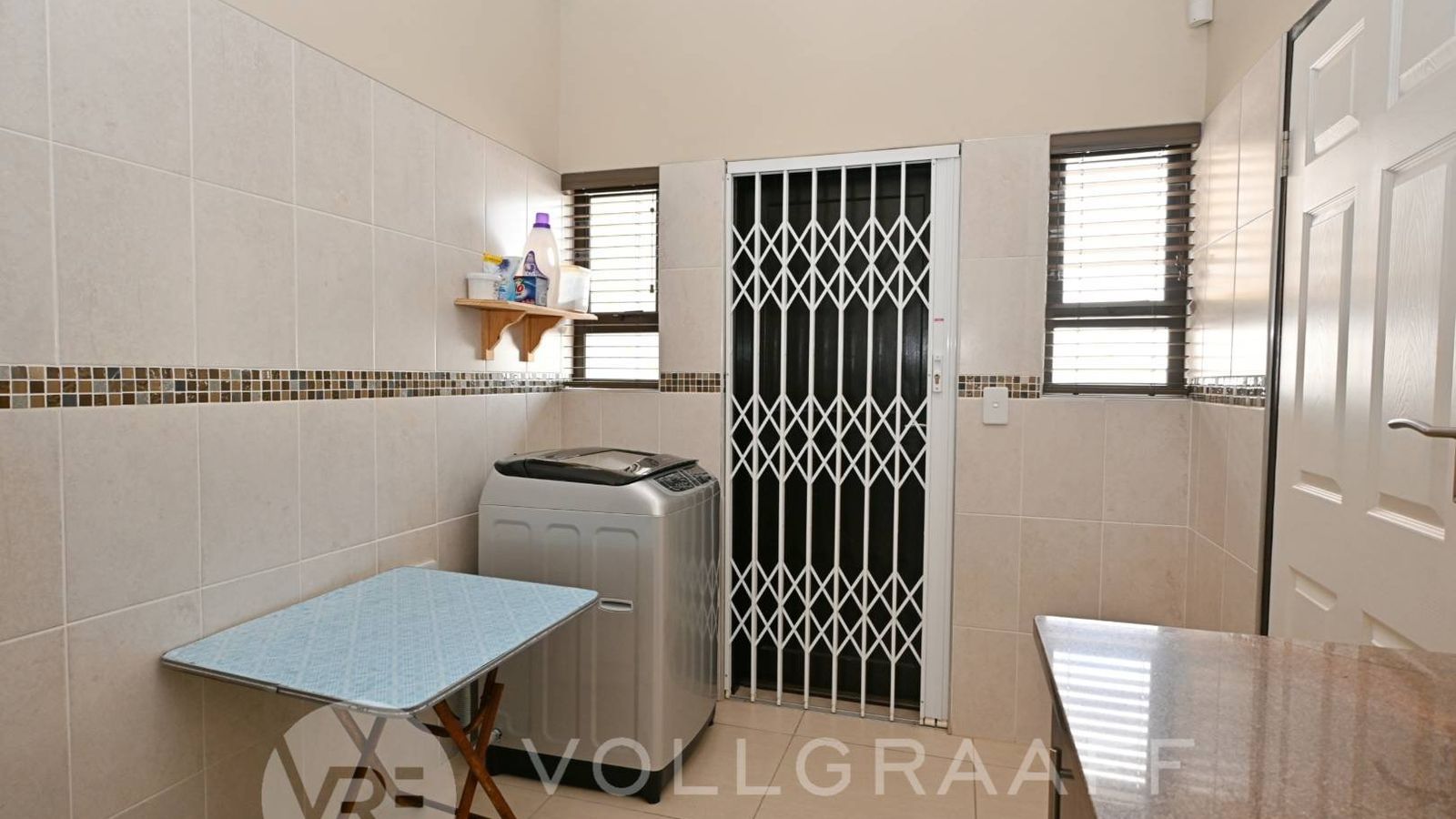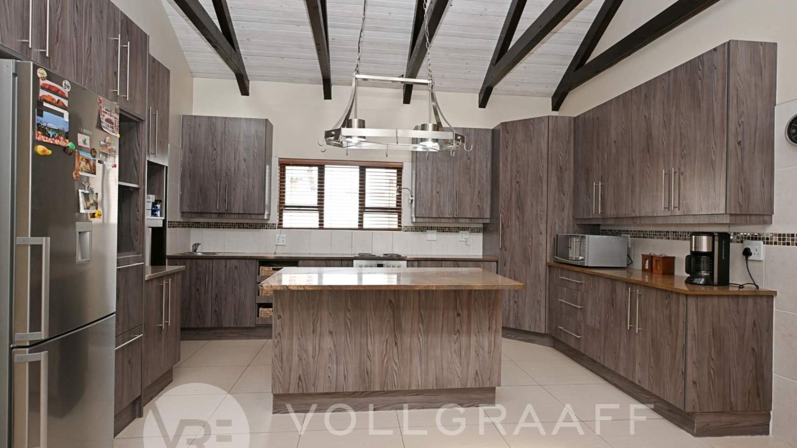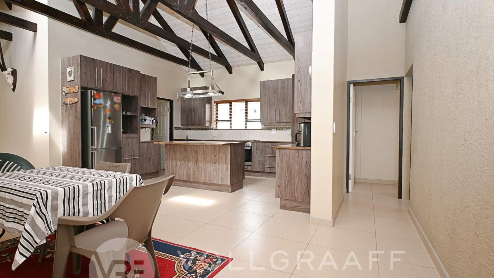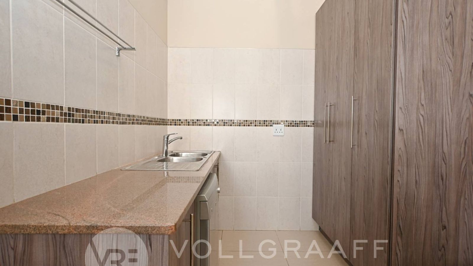 The kitchen is both functional and stylish, fitted with granite countertops and ample cabinetry. A separate scullery keeps the main area neat and practical, with direct access to the outside.