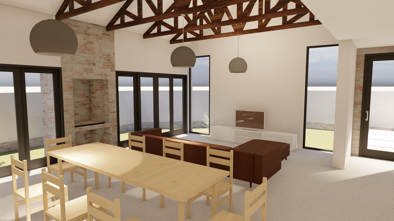 For those working from home or in need of a quiet space, the study offers a dedicated area for productivity. The home also features striking roof open trusses, adding character and a sense of spaciousness to the interior.