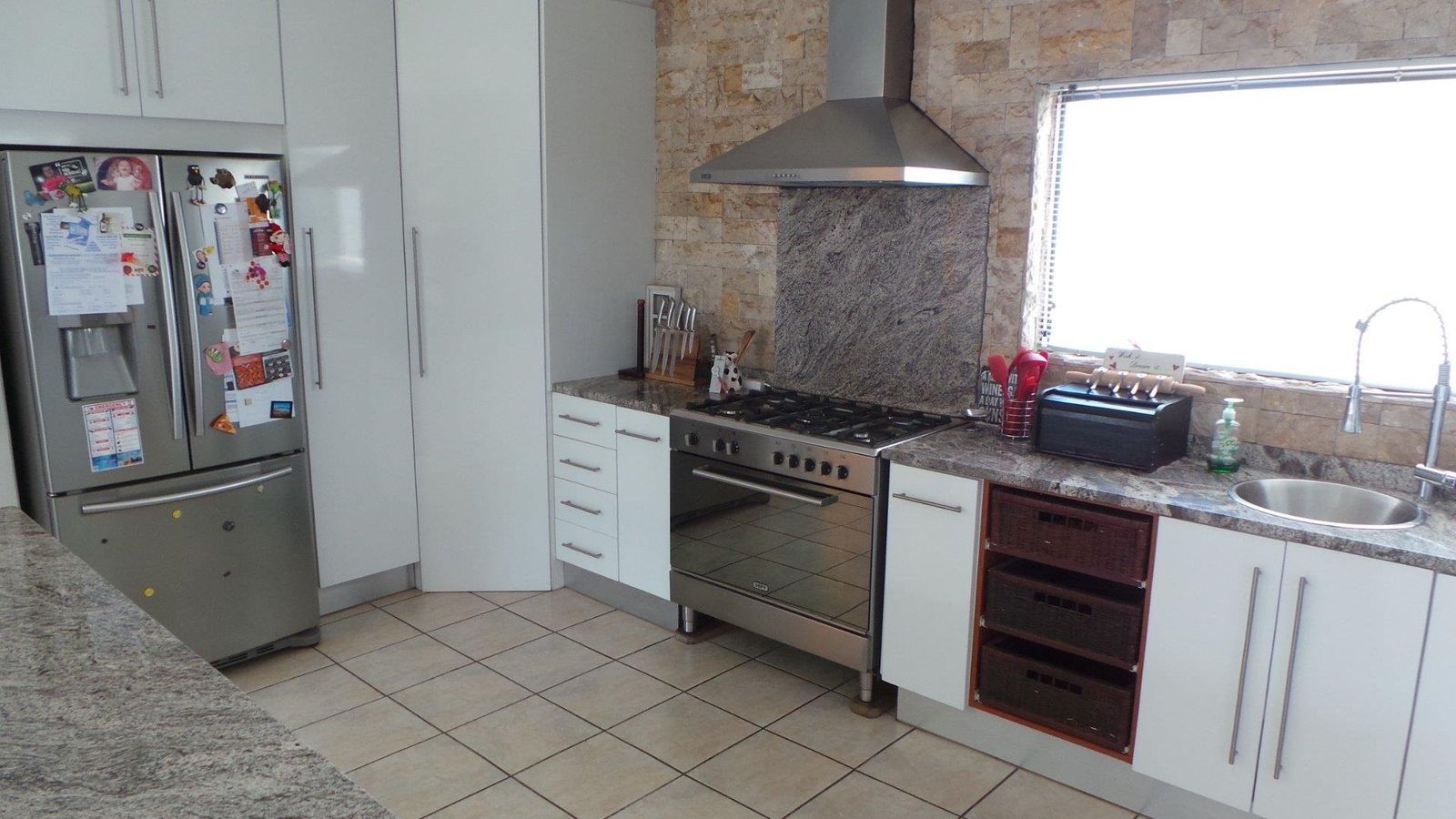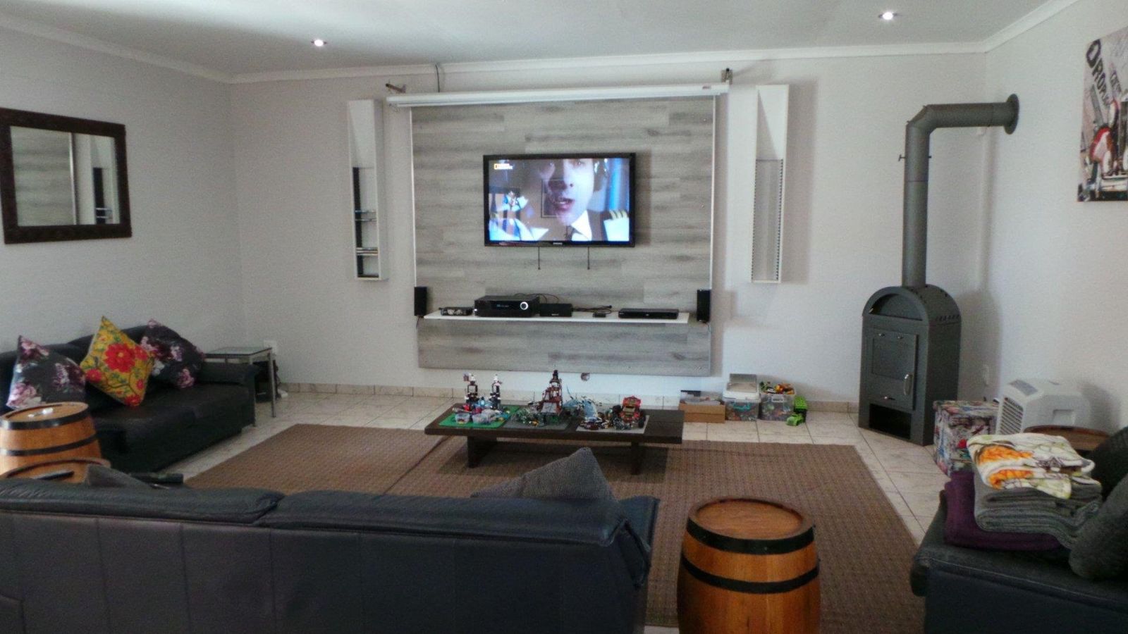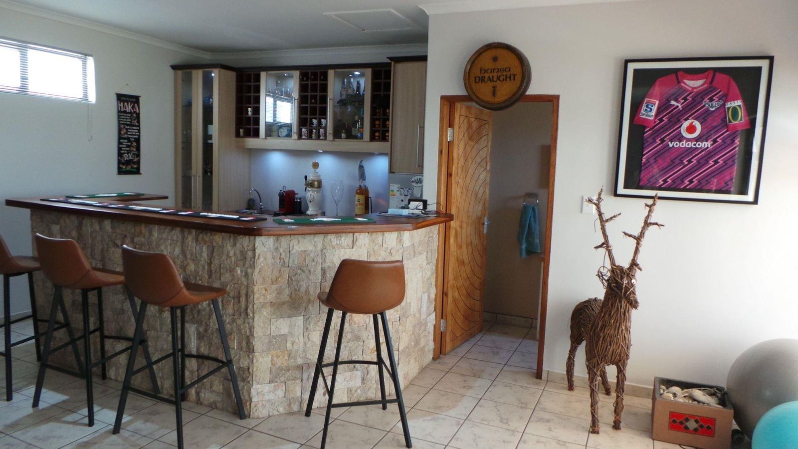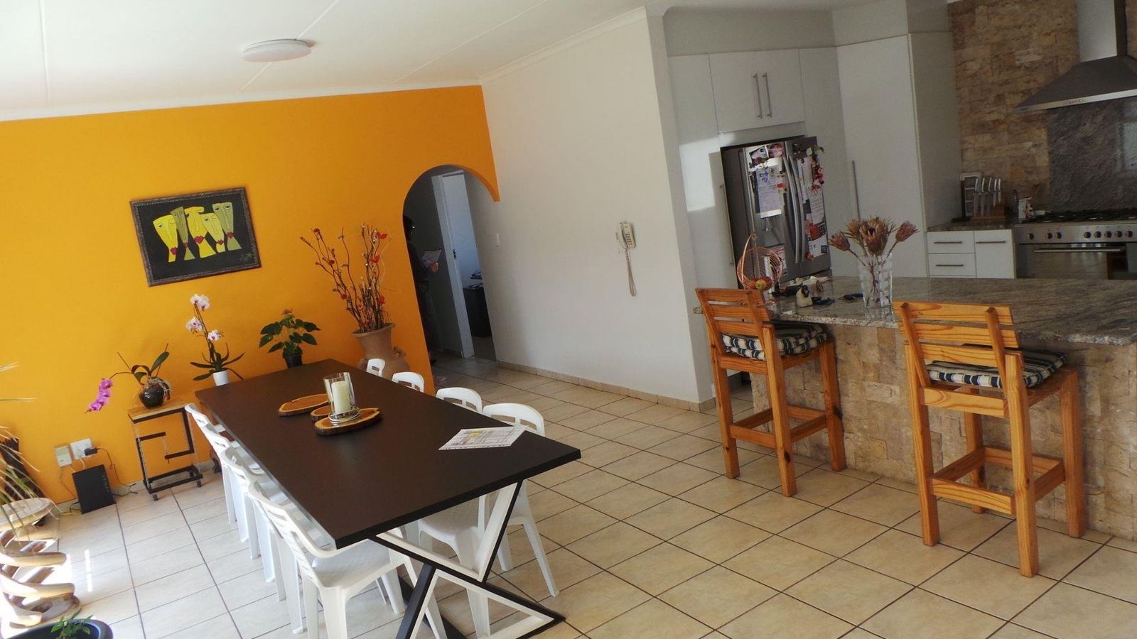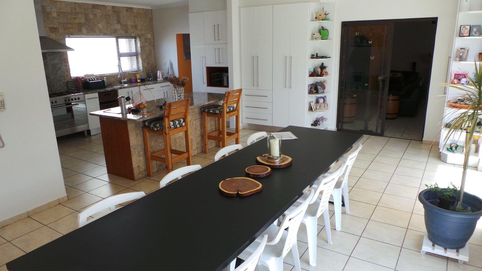 This property offers 3 bedrooms (main bedroom with walk in cupboards and en-suite bathroom), 2 bathrooms, large open plan lounge, dining room with indoor BBQ, bar, guest toilet, charming kitchen with gas stove, oven and hob, large scullery/laundry, double garage (extra length), high boundary walls, alarm system and alarm beams outside.