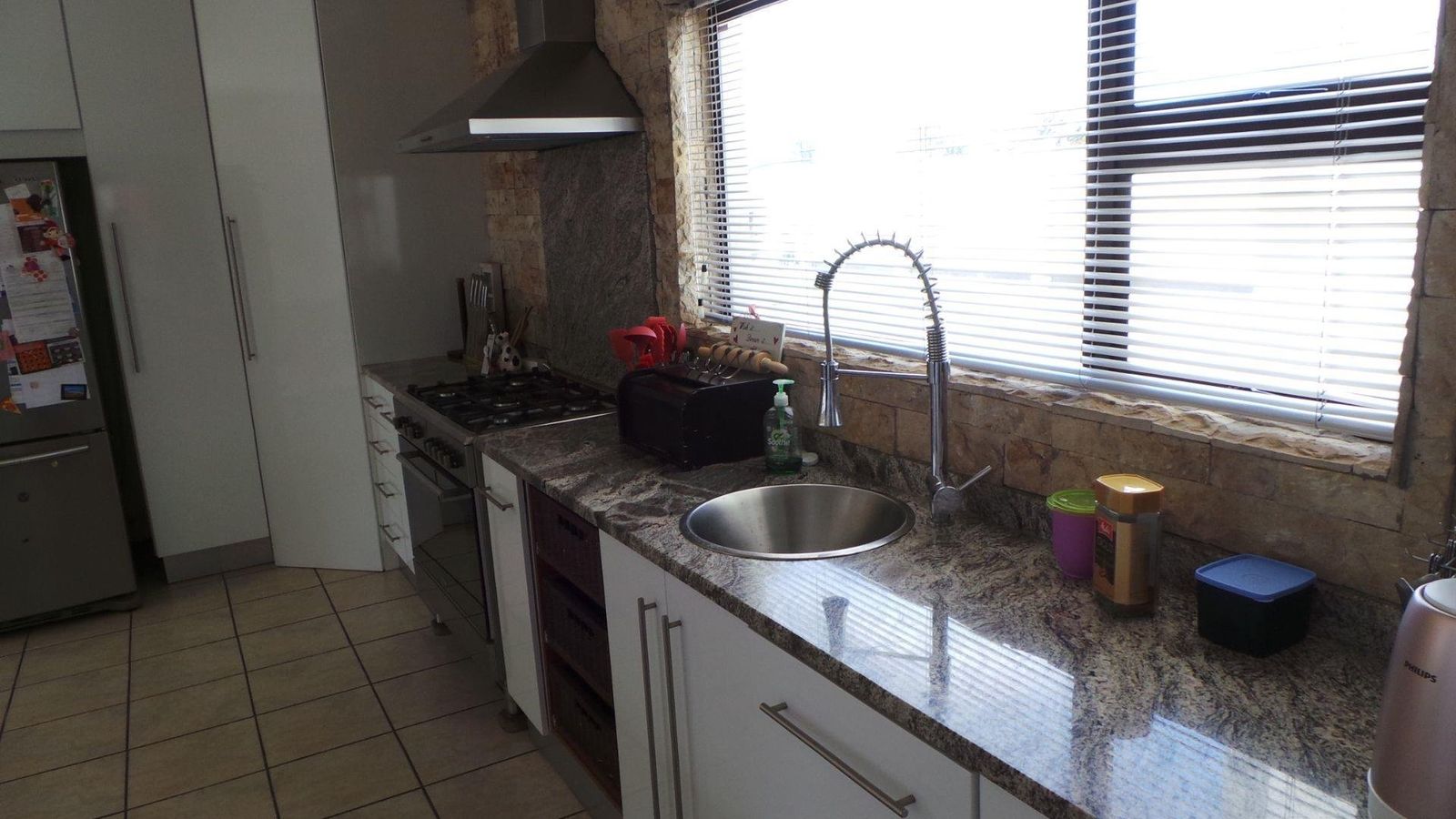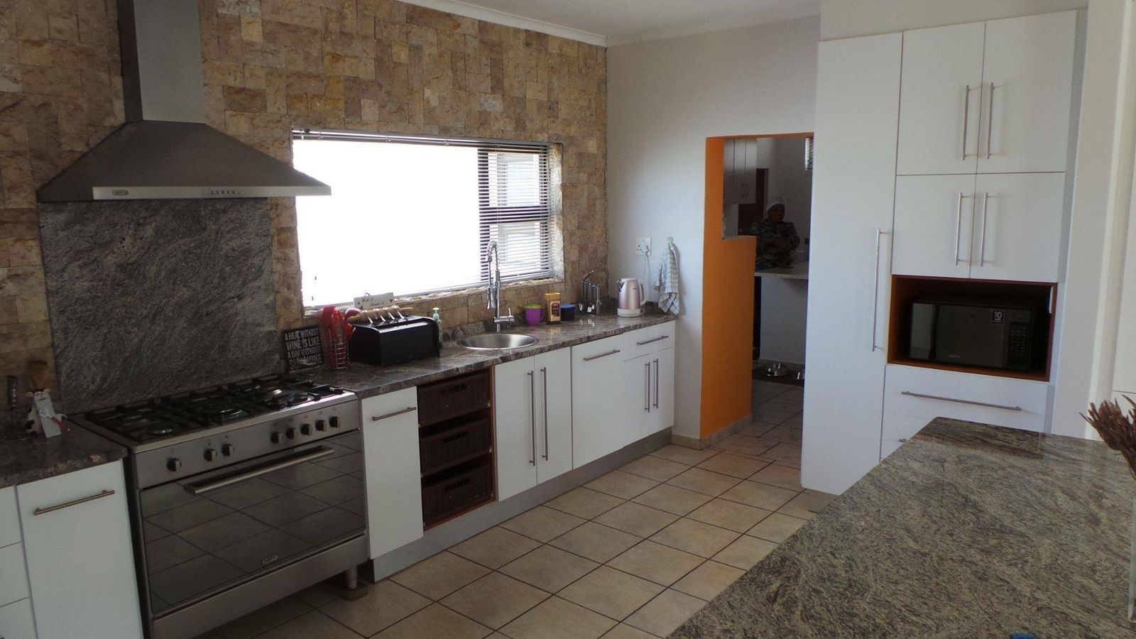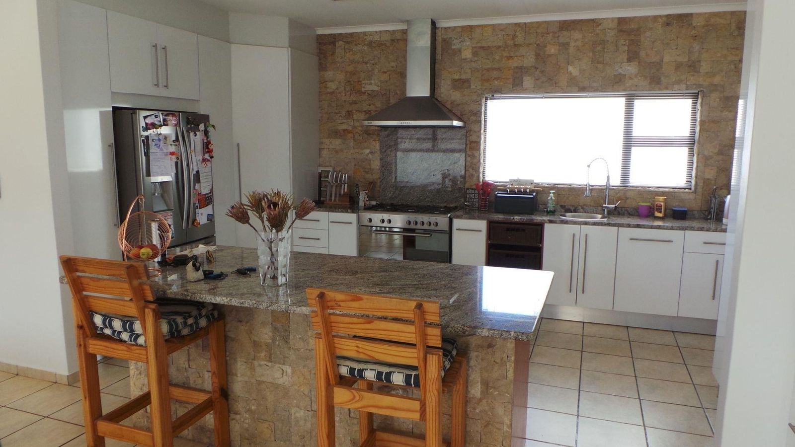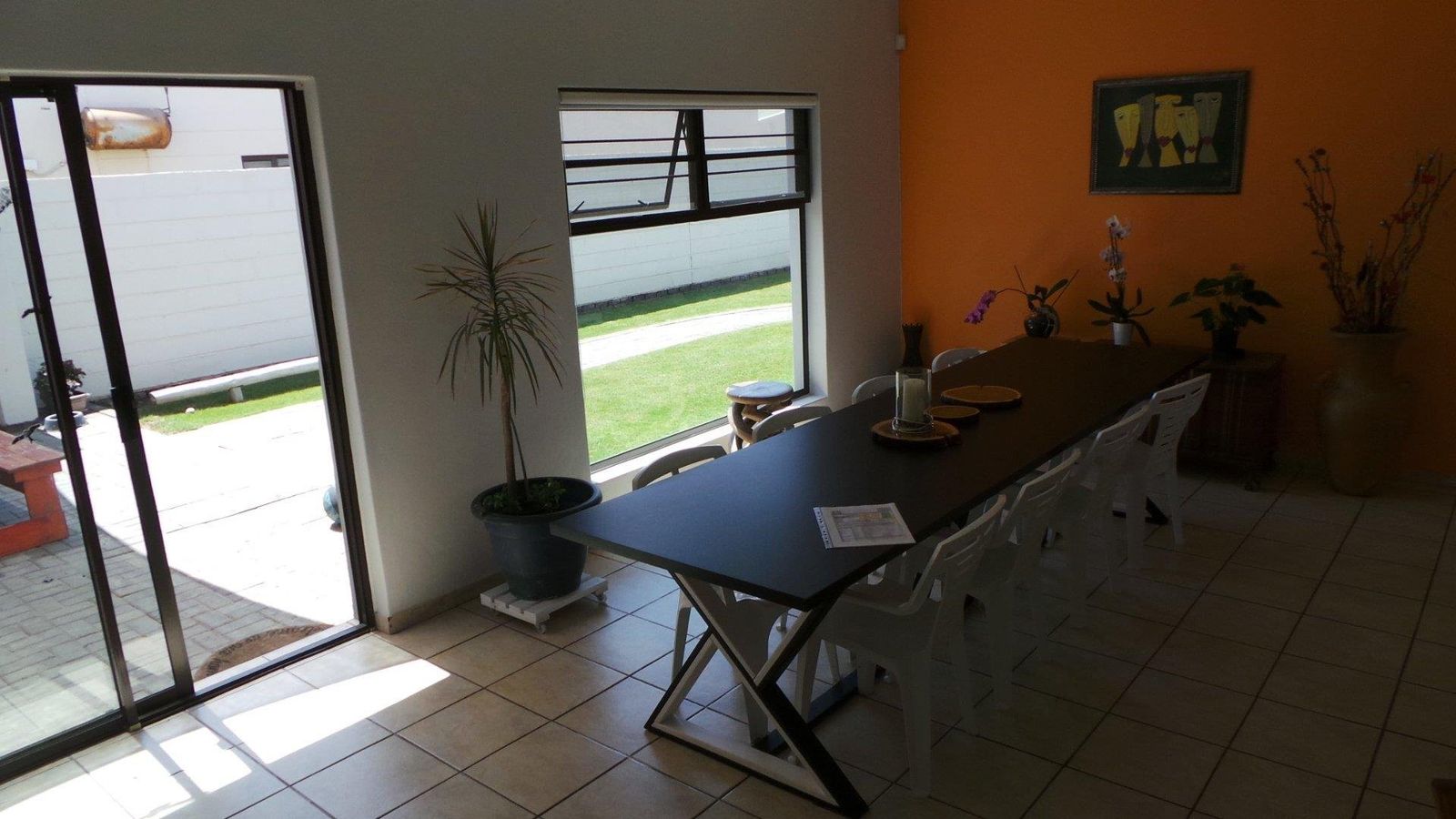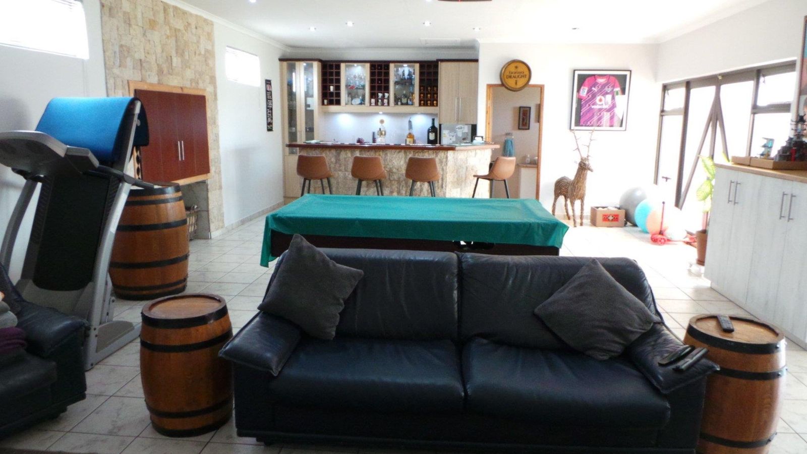 This property offers 3 bedrooms (main bedroom with walk in cupboards and en-suite bathroom), 2 bathrooms, large open plan lounge, dining room with indoor BBQ, bar, guest toilet, charming kitchen with gas stove, oven and hob, large scullery/laundry, double garage (extra length), high boundary walls, alarm system and alarm beams outside.