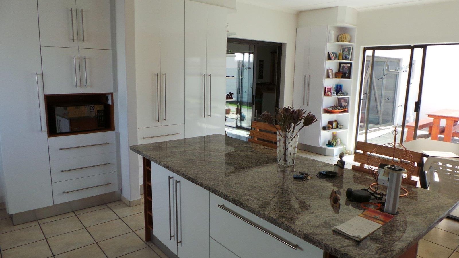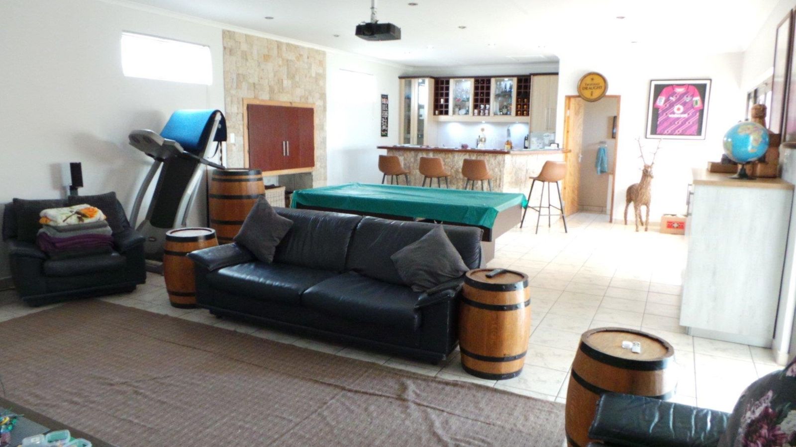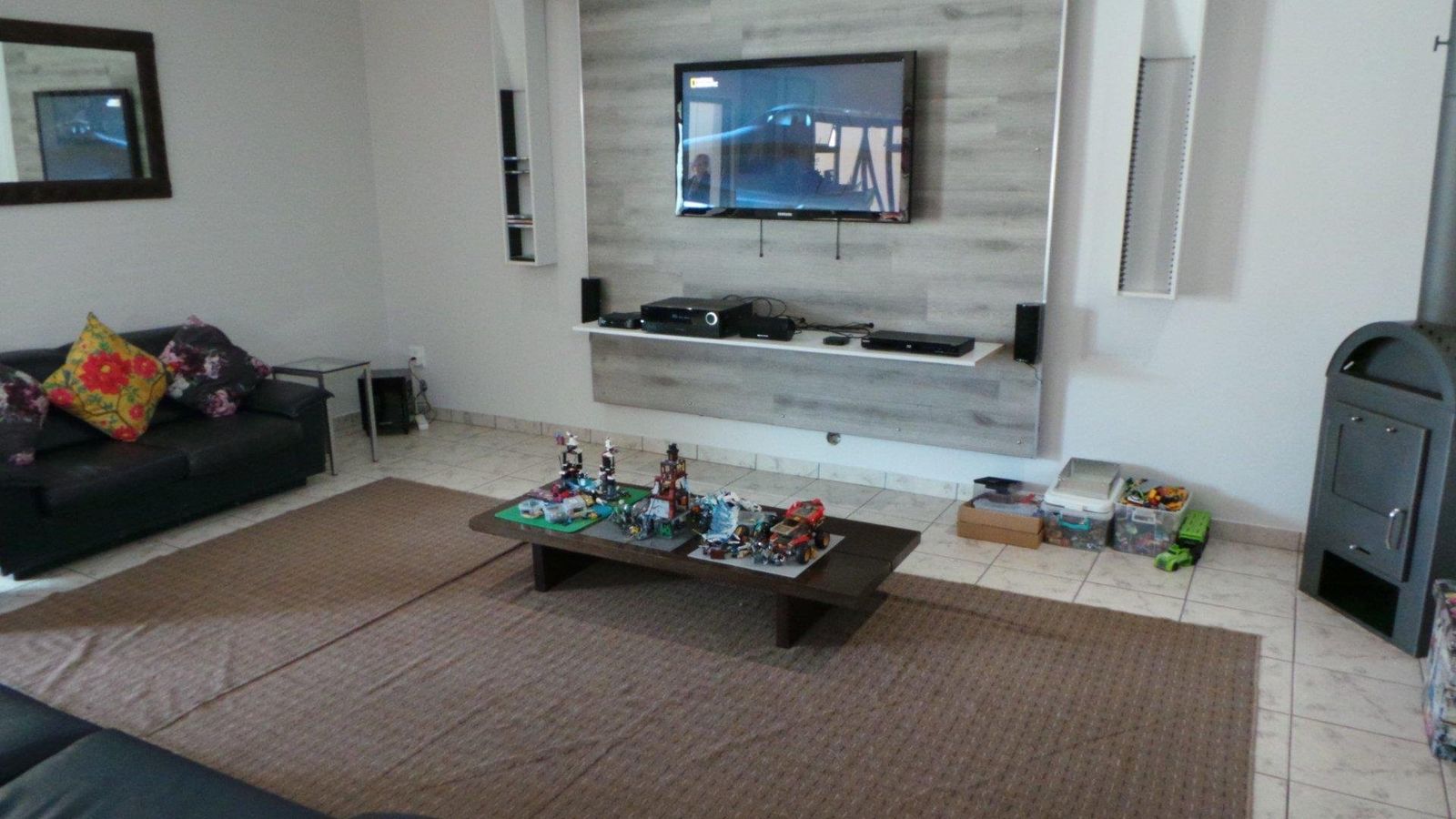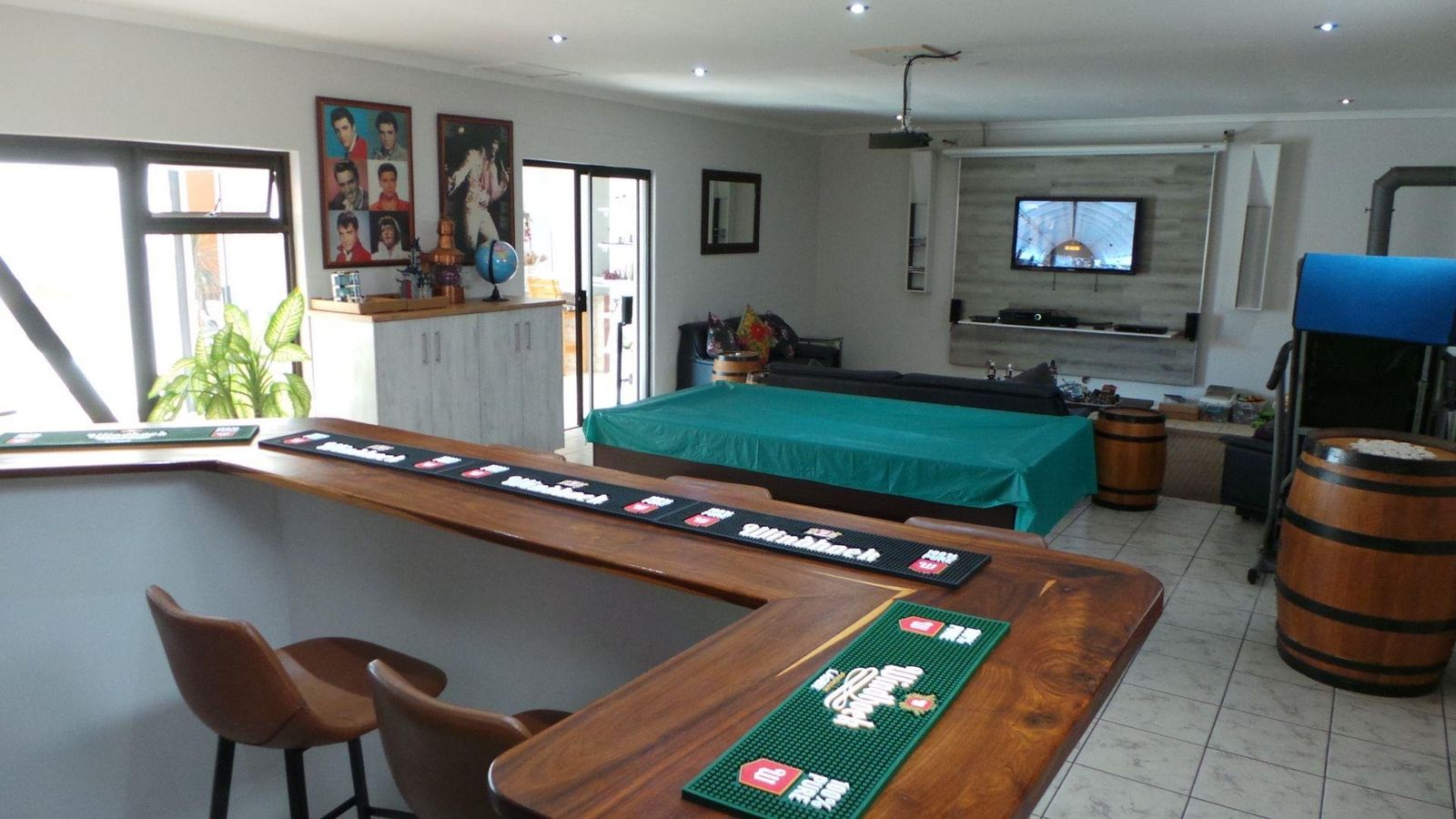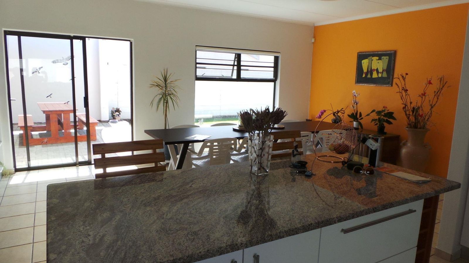 This property offers 3 bedrooms (main bedroom with walk in cupboards and en-suite bathroom), 2 bathrooms, large open plan lounge, dining room with indoor BBQ, bar, guest toilet, charming kitchen with gas stove, oven and hob, large scullery/laundry, double garage (extra length), high boundary walls, alarm system and alarm beams outside.
