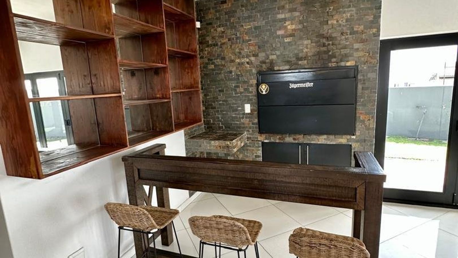 A second lounge area offers a fitted bar and indoor barbecue, opening out onto a lush, landscaped garden — an ideal setting for entertaining guests or enjoying tranquil family moments.