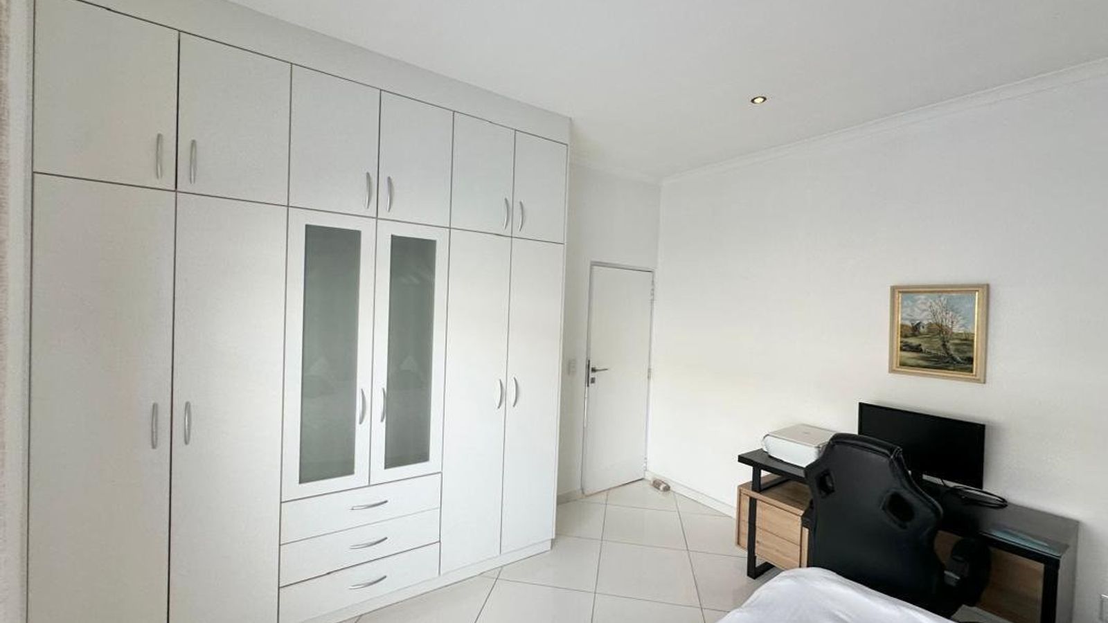The ground floor accommodates two additional bedrooms, both fitted with built-in cupboards and air conditioning, along with a well-appointed family bathroom.