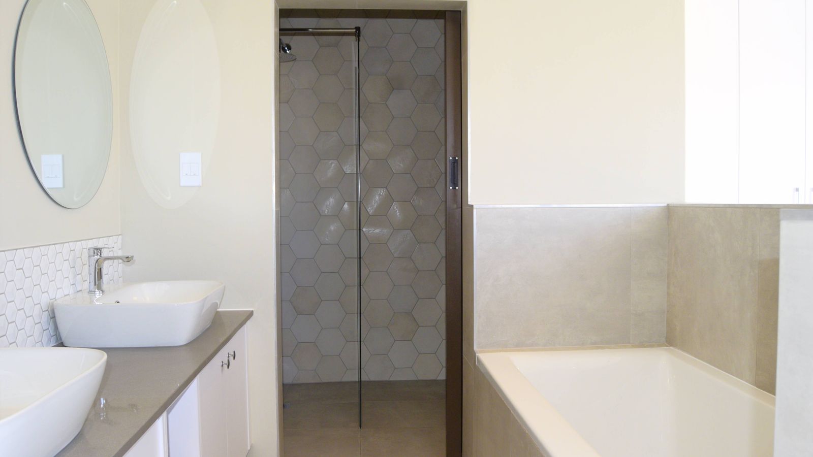 Two additional bedrooms include built-in cupboards and share a separate guest bathroom with a shower.