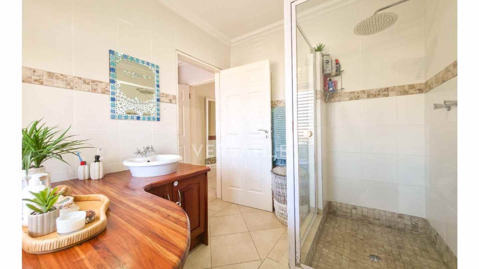 Upstairs, there are 3 bedrooms and 2 bathrooms. The main bedroom with a ensuite bathroom and its own private balcony, with a bit of a ocean view.