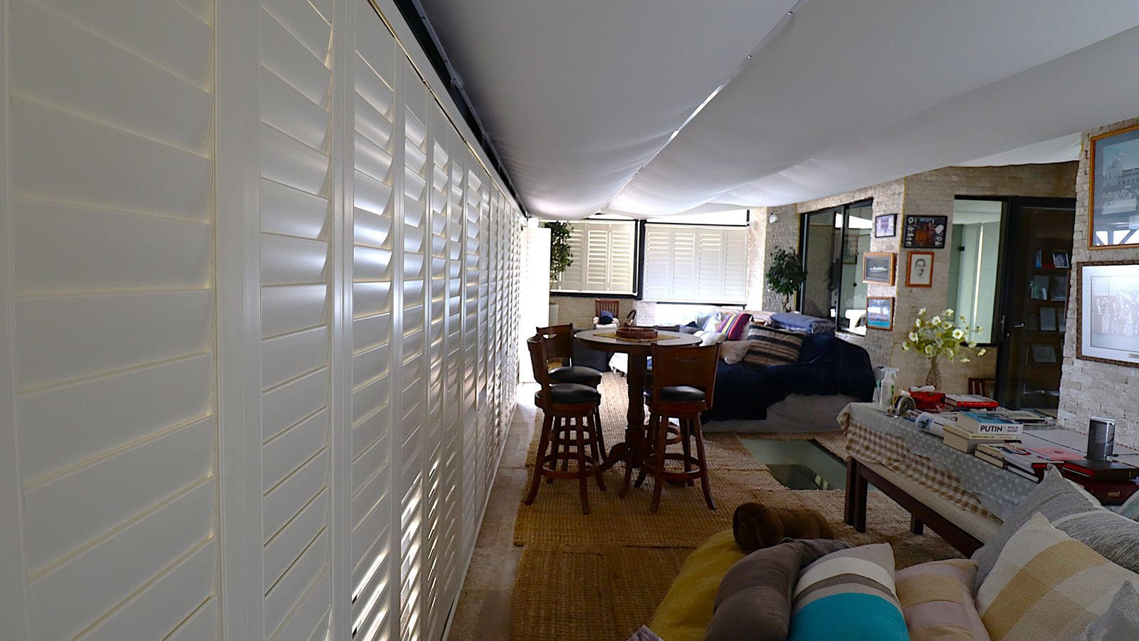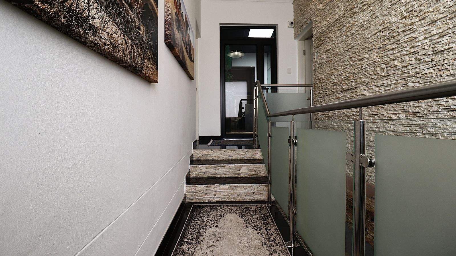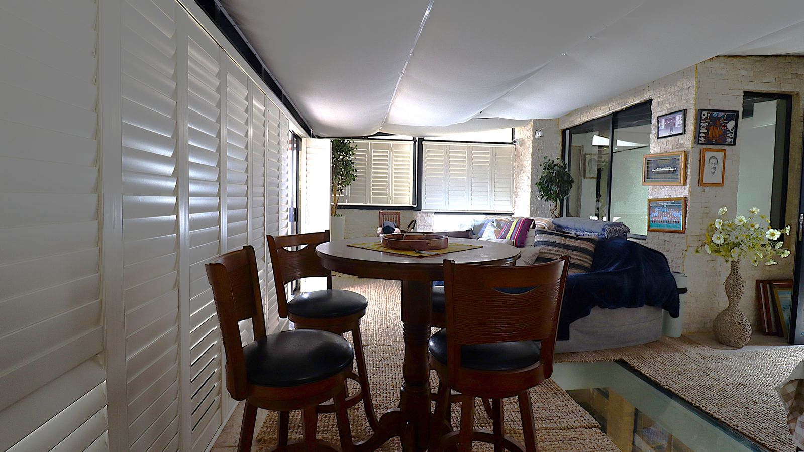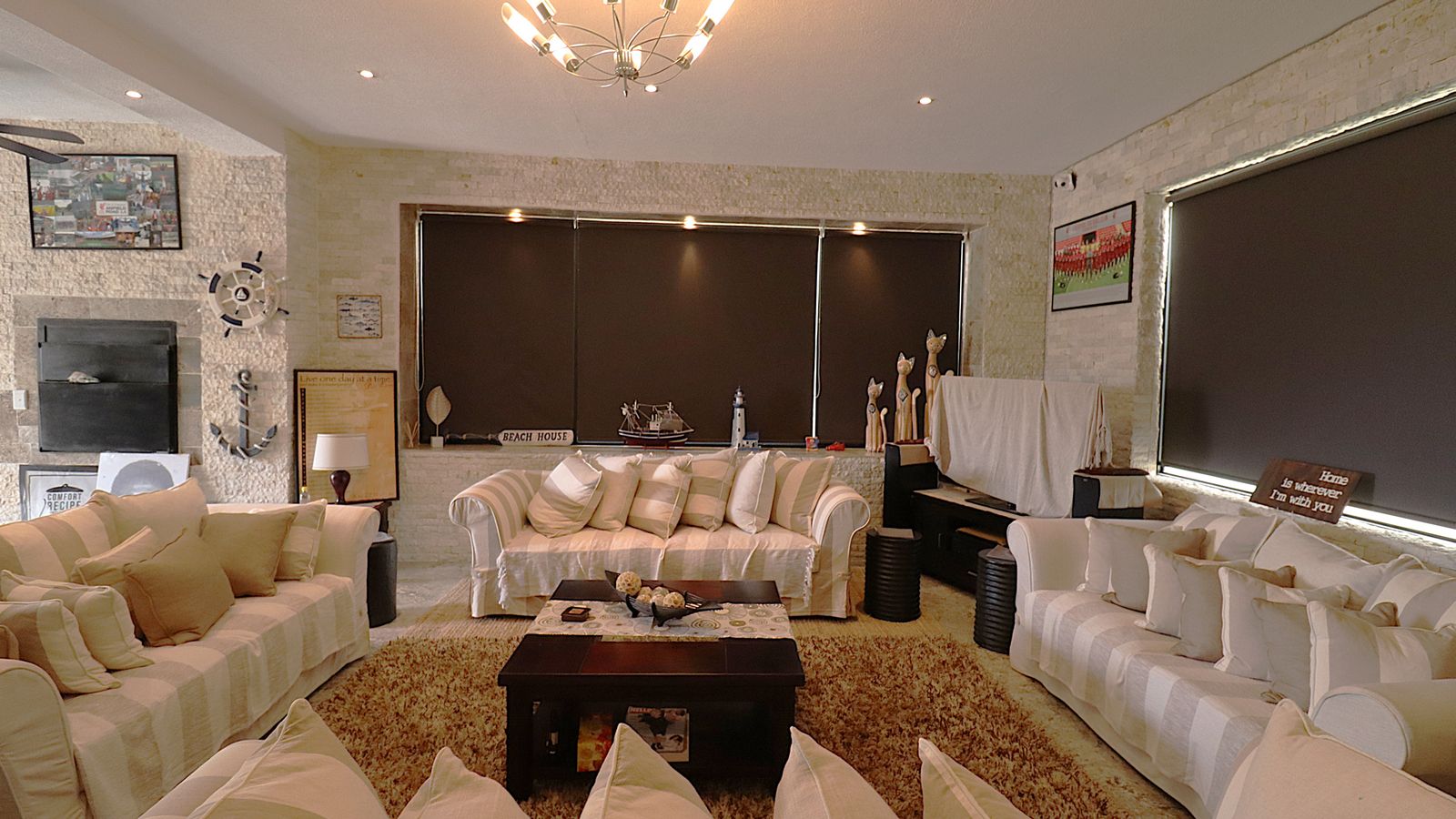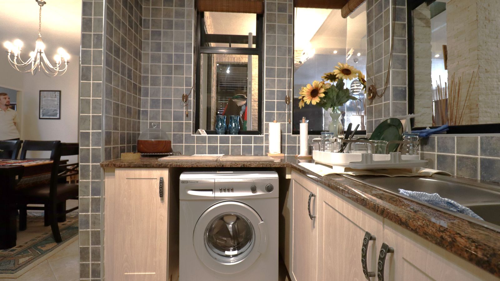 The main entrance walks into a spacious guest lounge and dining area on the ground level with an indoor BBQ. The second lounge and dining space offers more privacy and forms part of the small cozy kitchen area.