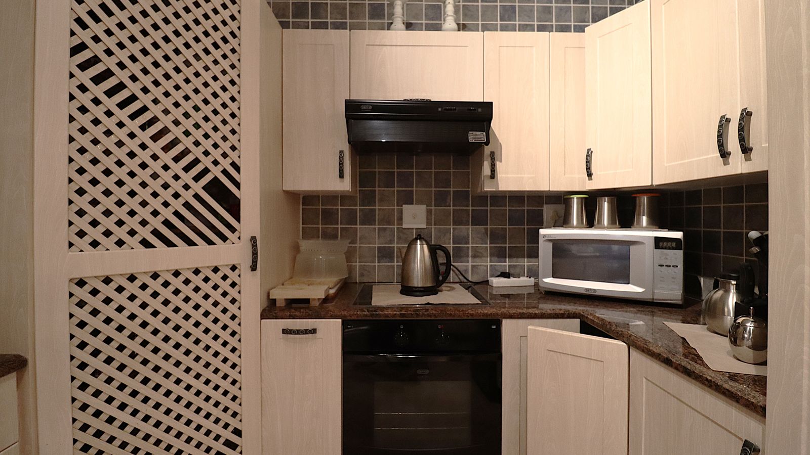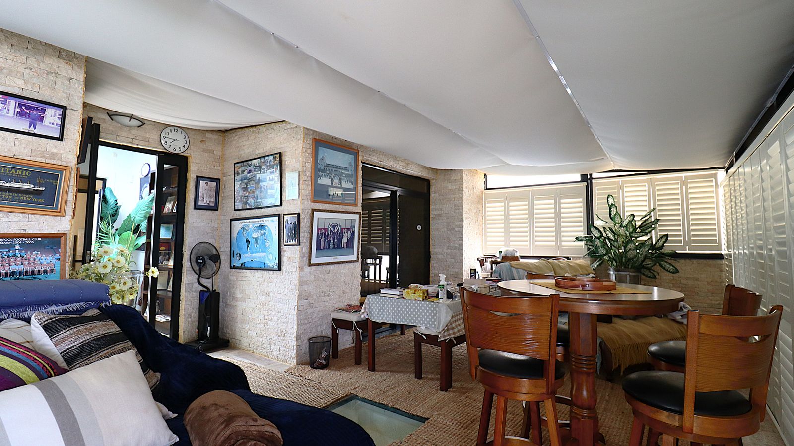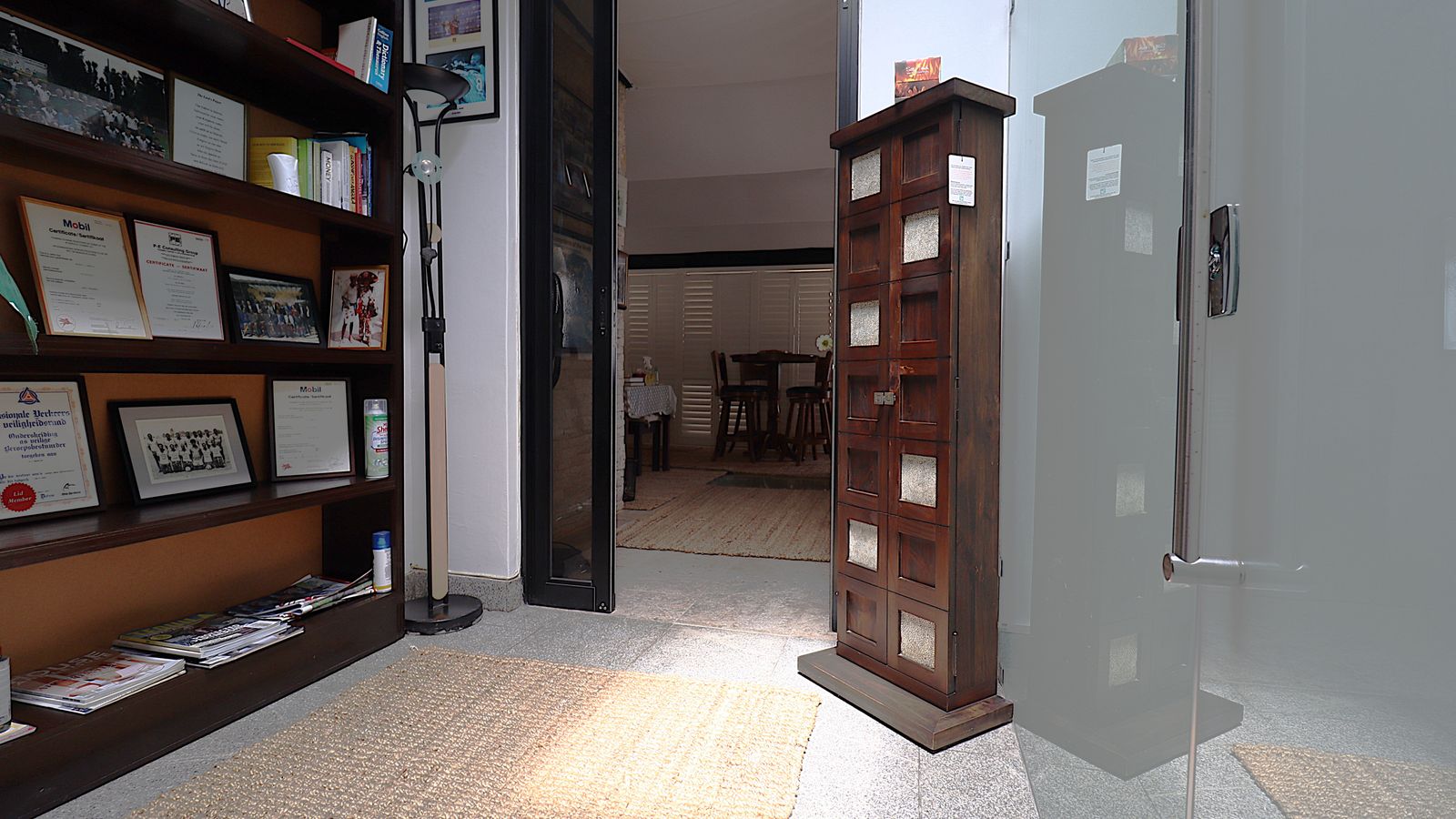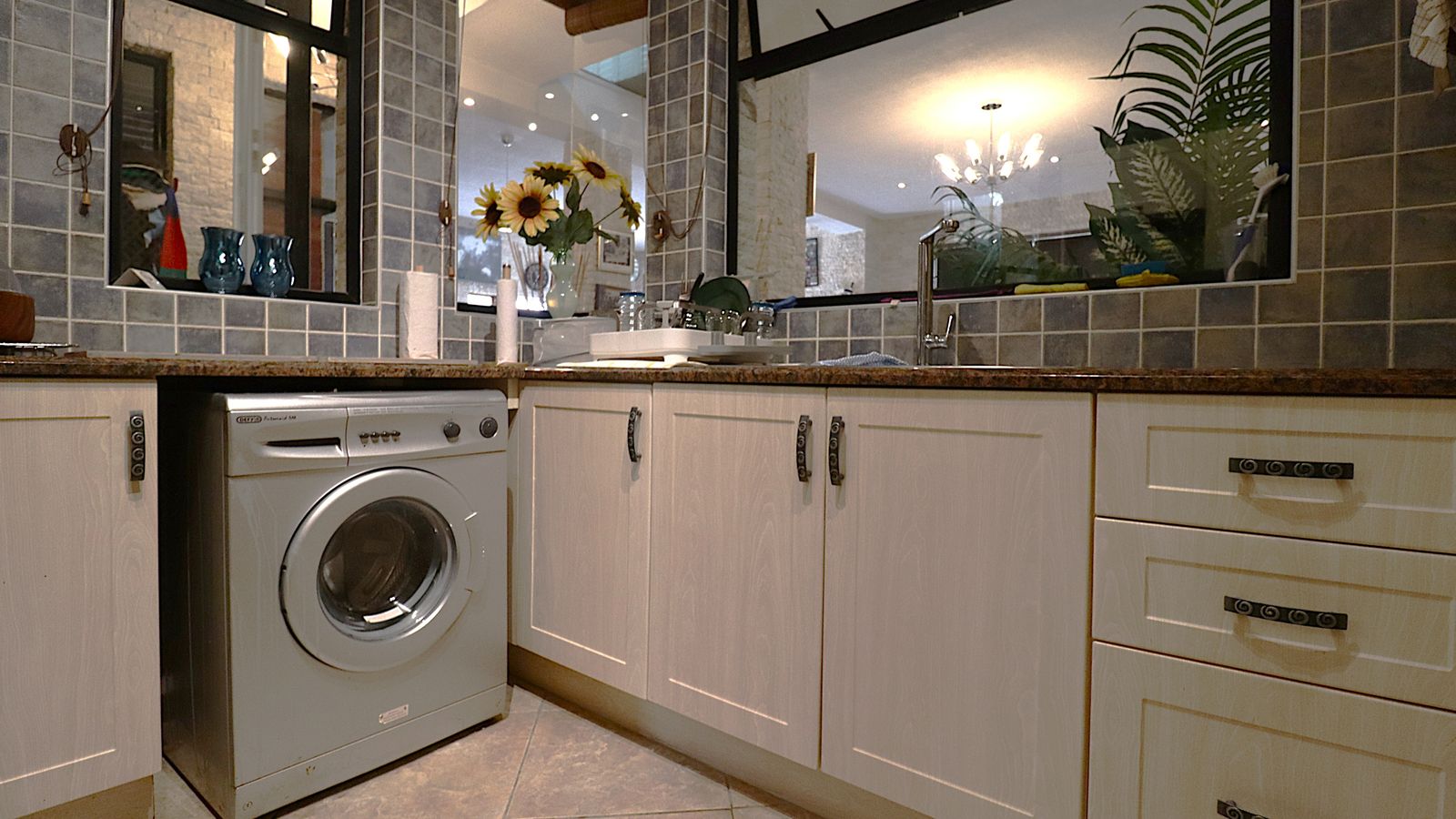 The main entrance walks into a spacious guest lounge and dining area on the ground level with an indoor BBQ. The second lounge and dining space offers more privacy and forms part of the small cozy kitchen area.