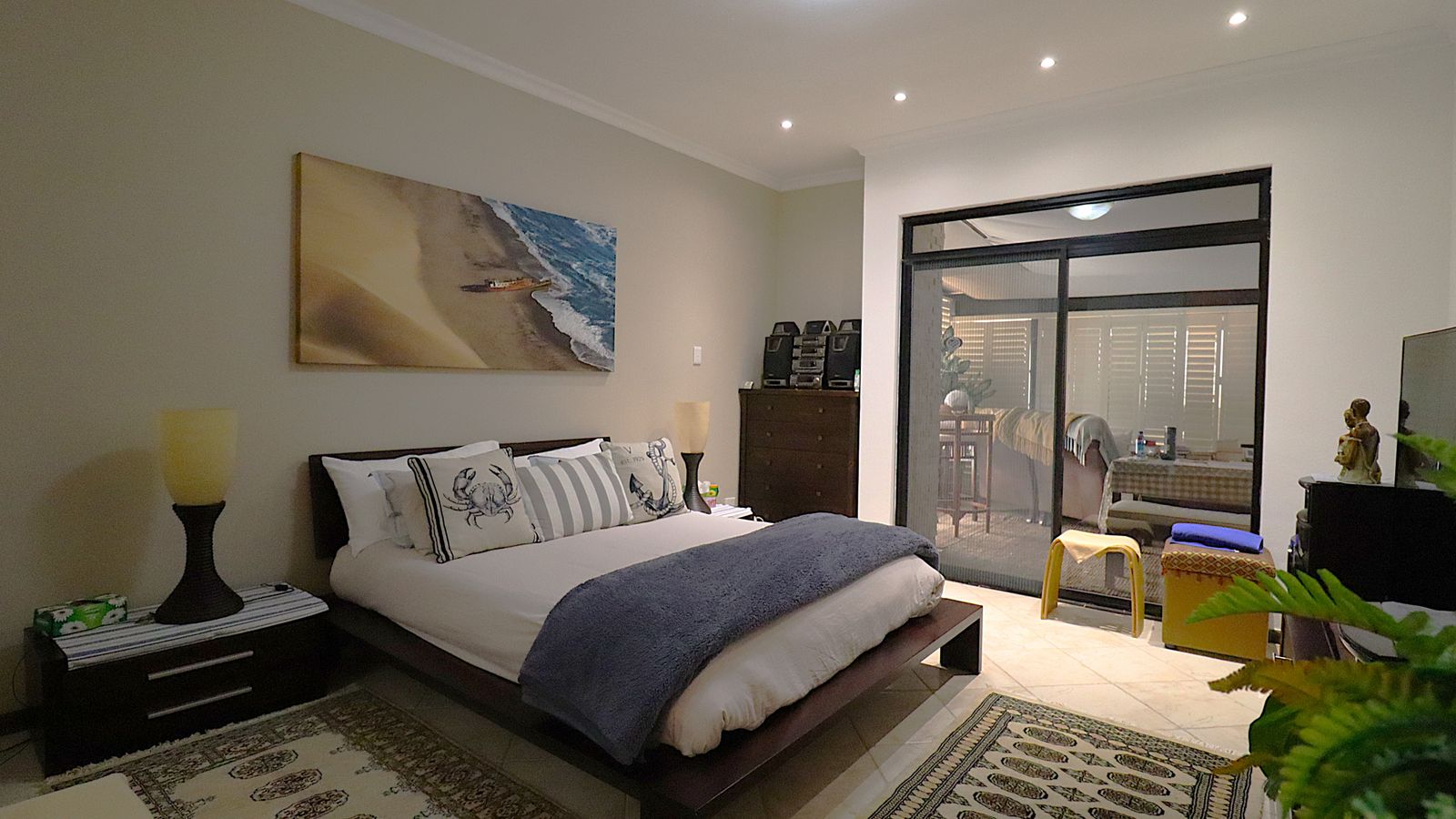 This apartment is a few steps from the beach with beautiful views to the ocean and beach from the private lounge and balcony upstairs.