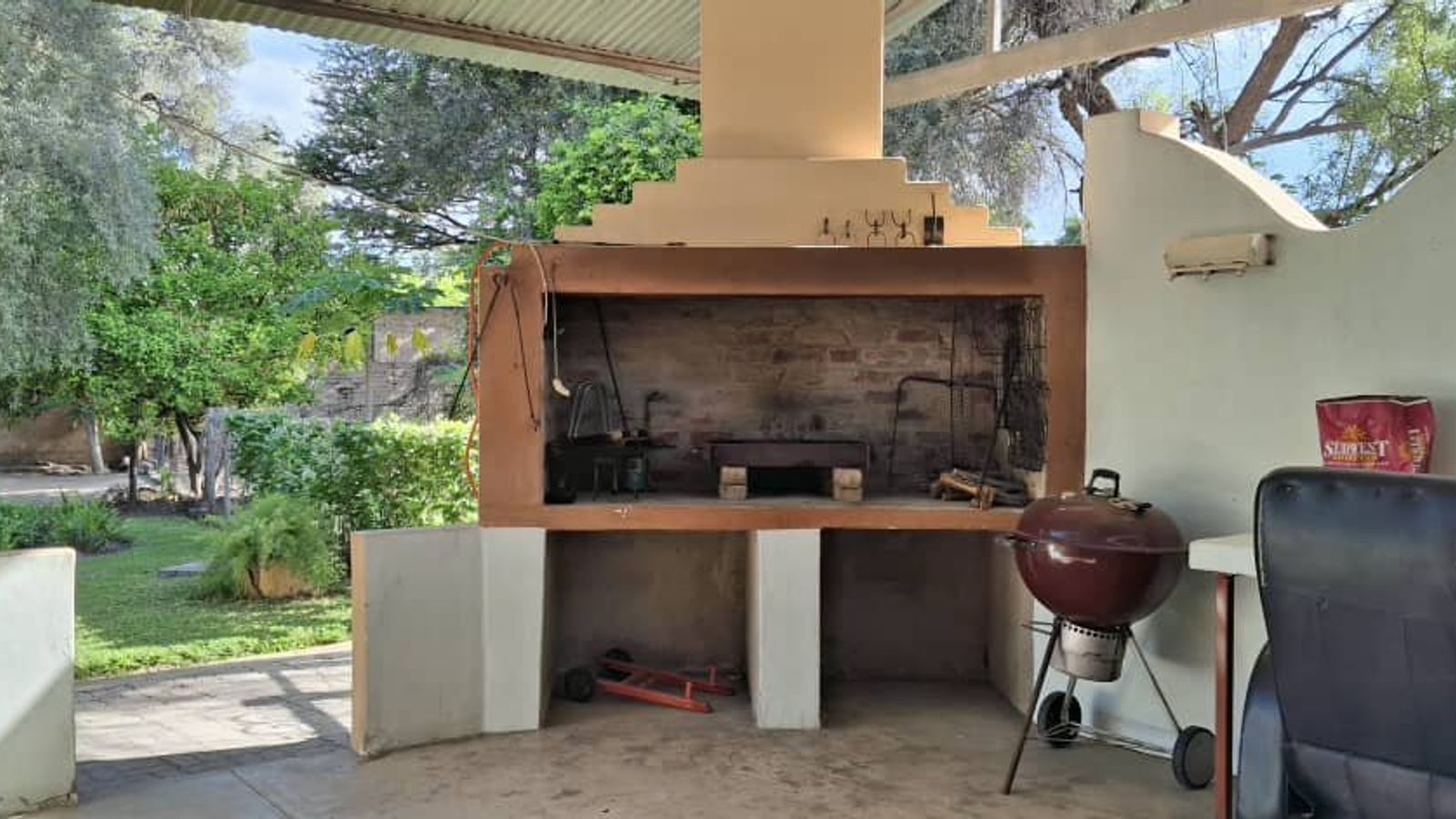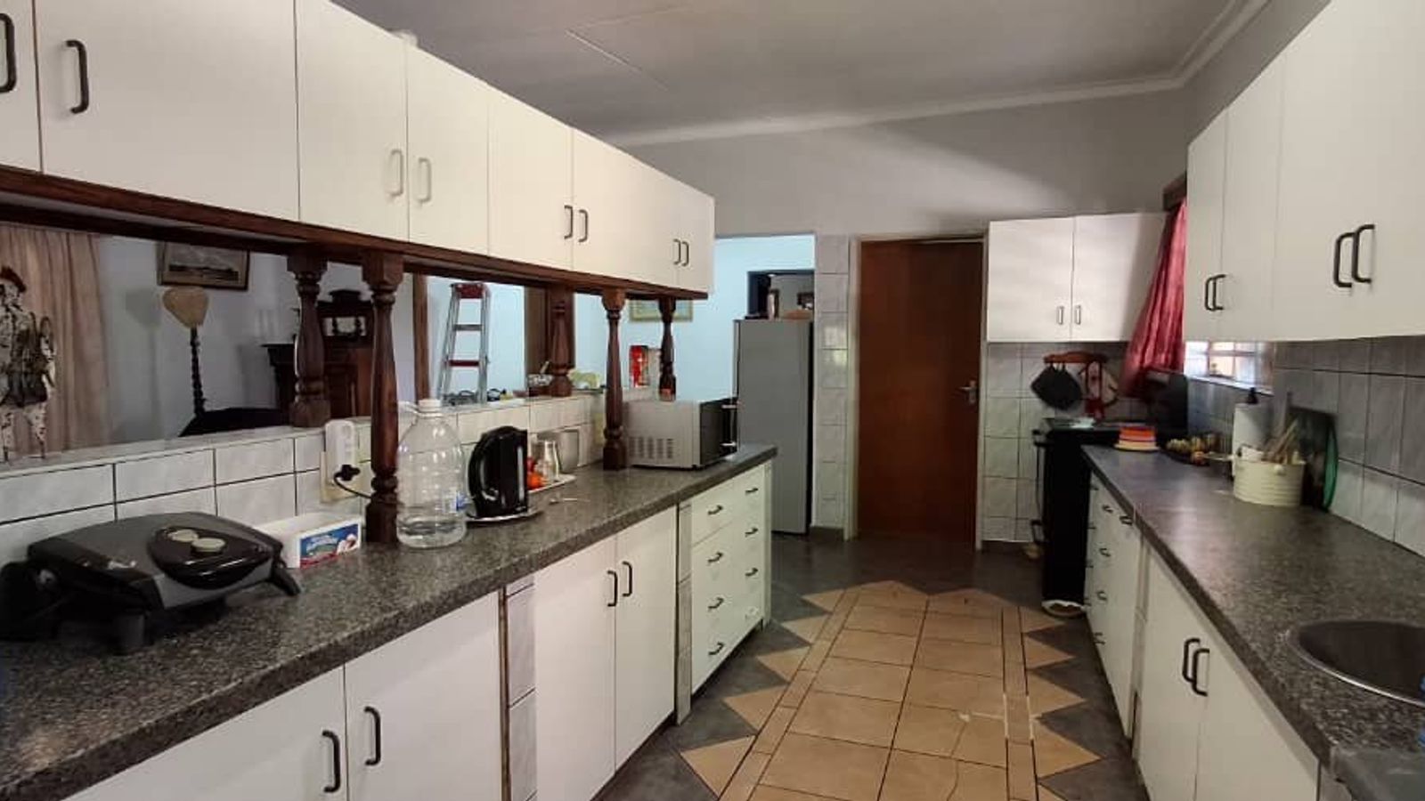 The expansive lounge invites you to relax and unwind, while the generously-sized kitchen, complete with built-in cupboards and a pantry, offers space and functionality for all your culinary adventures. Parking is ample with a double garage and additional carport. Outside, enjoy the built-in BBQ and veranda, ideal for entertaining guests. For your peace of mind, the property is equipped with burglar bars.