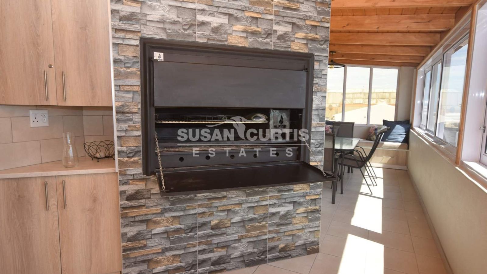 # Open plan living area, with lounge, dining area and indoor BBQ