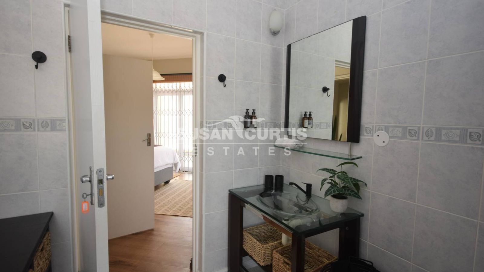 # 2 Bedrooms, each with own en-suite bathroom. French doors opening towards an East facing patio.