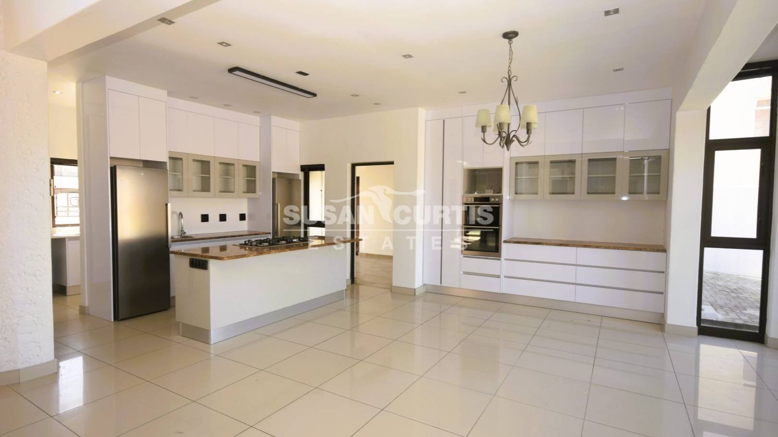 Open plan living dining, lounge, entertaining (with built in braai) - and kitchen (light and modern) areas