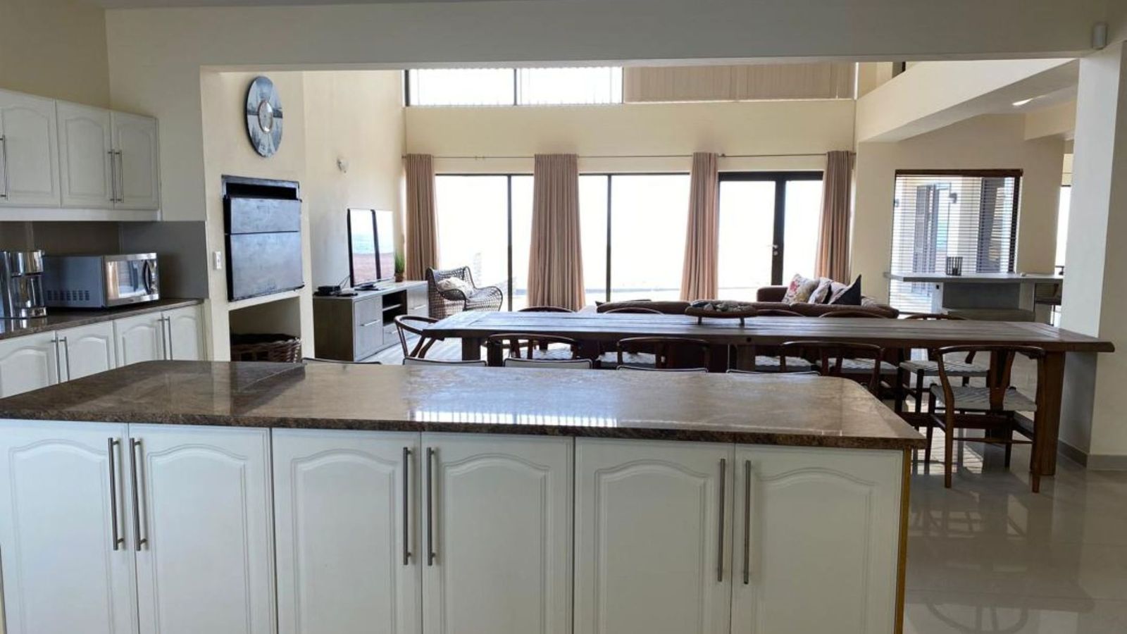 From the moment you enter, expansive windows and sleek aluminium doors frame the sea like a living canvas. Double-volume ceilings flood the space with natural light, setting the tone for open-plan luxury.