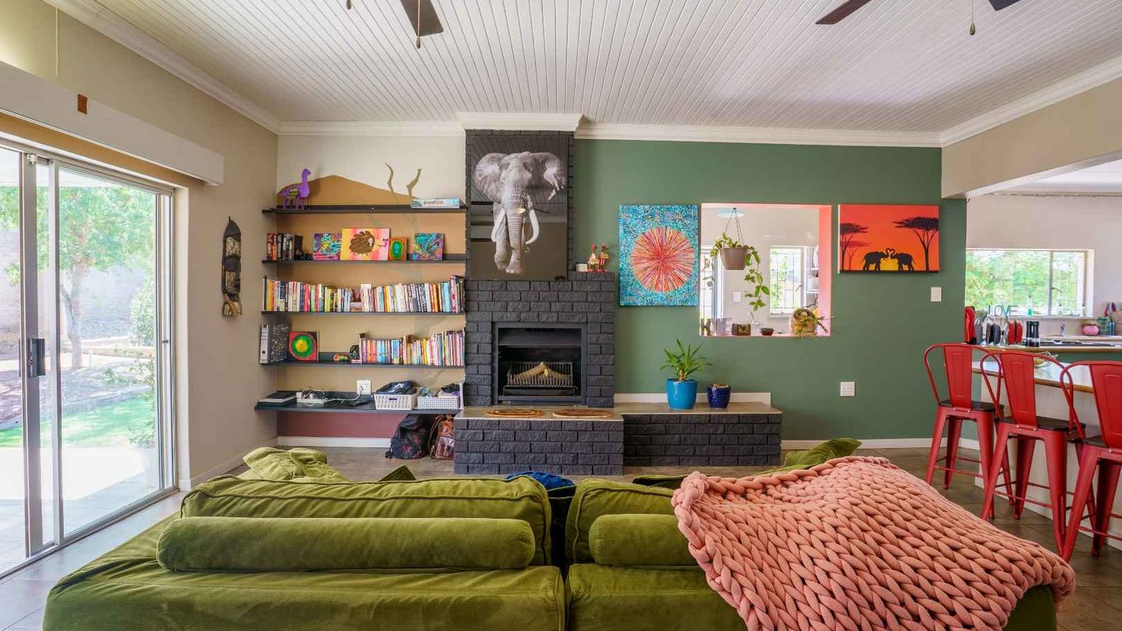 Open-plan kitchen & lounge (with aircon and fireplace)